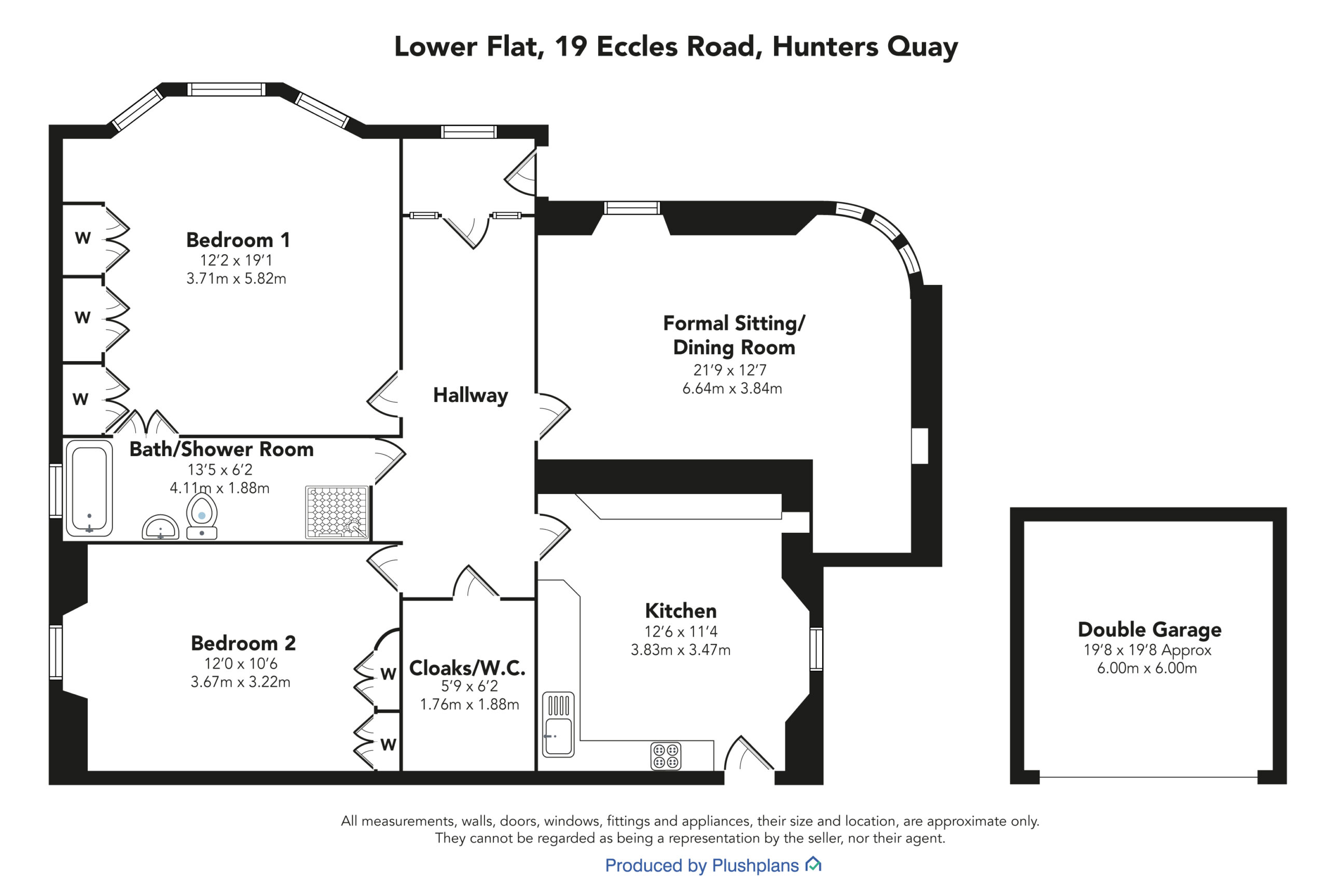 The Lower Flat at 19 Eccles Road is formed by the majority of the ground floor level of a detached period home with a distinctive tower. The building is of white painted stone construction with contrasting black painted detail to window mullions and doors and the whole is under a slated roof. The subjects have been subject to a comprehensive programme of modernisation and improvement and are set amid mature gardens and grounds, the portion of which connected with The Lower Flat having been very nicely landscaped.