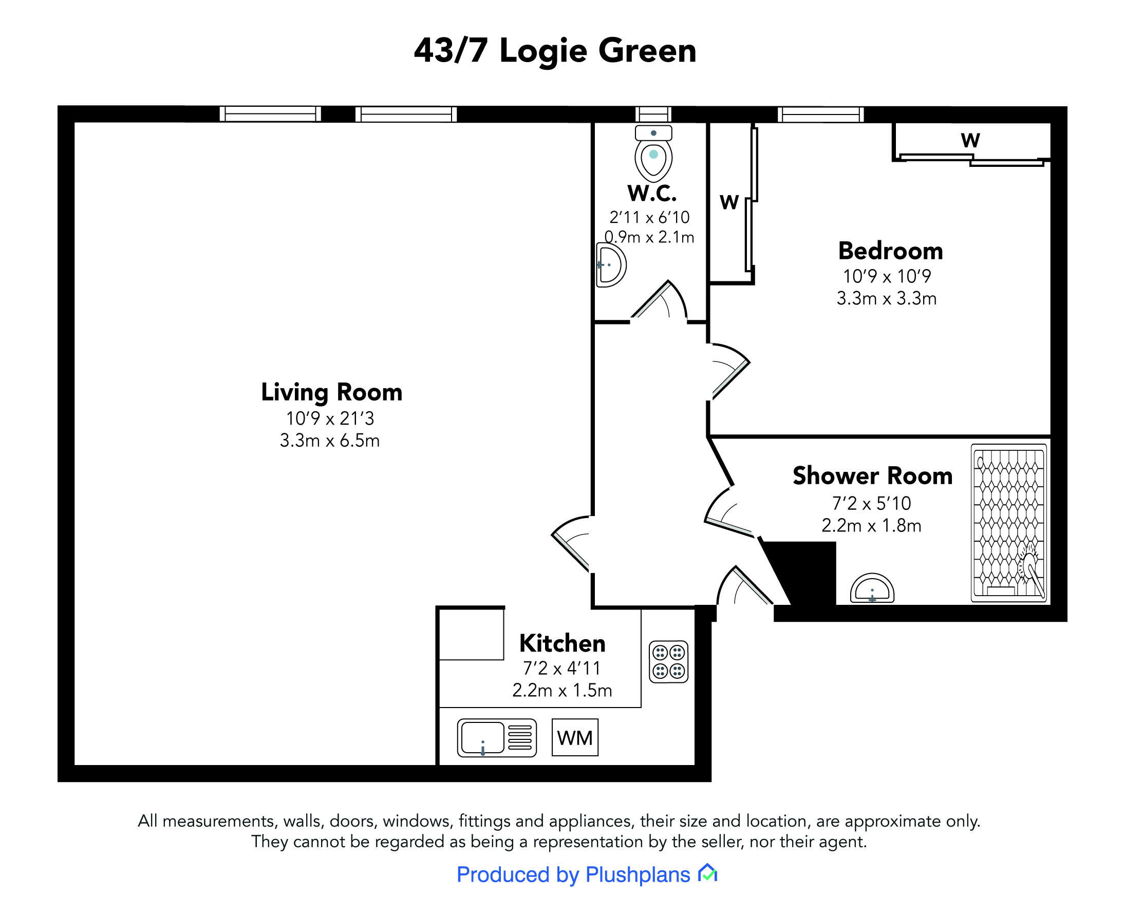 Flat 7, 43 Logie Green Road, it is a fine one-bedroom apartment on the second floor of a handsome honey sandstone block with contrasting smooth red ashlar at window mullions and doors. The apartment faces due west and from its second-floor position there are fine open aspects. The flat is in fresh decorative order with a modern galley style kitchen, shower room and separate wc. Traditional internal doors feature stainless steel door ironmongery, and the main rooms all feature restored pitch pine floorboards.