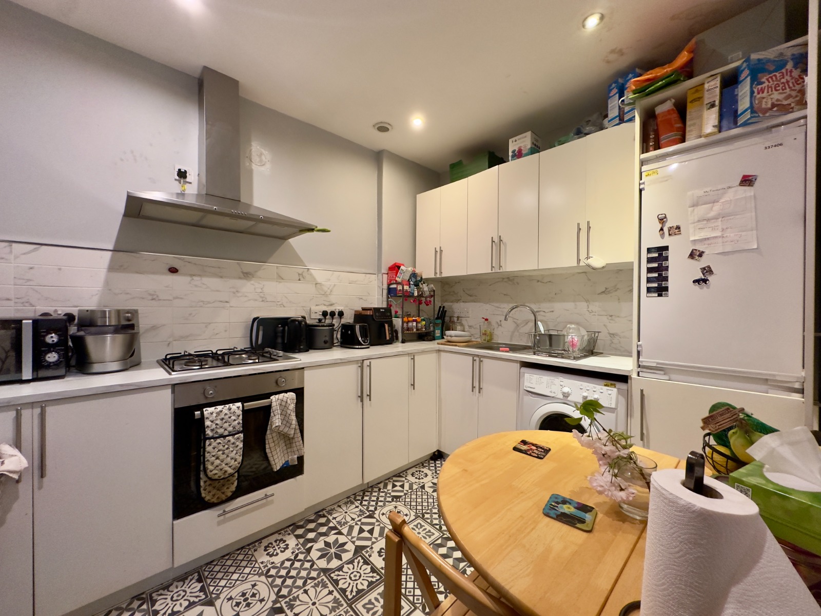 The fitted kitchen comes fully equipped for all your cooking needs and includes an oven, hob with hood, washing machine, fridge & freezer.