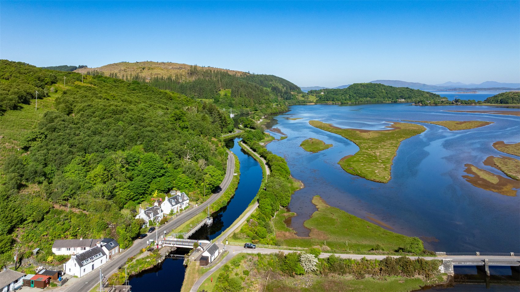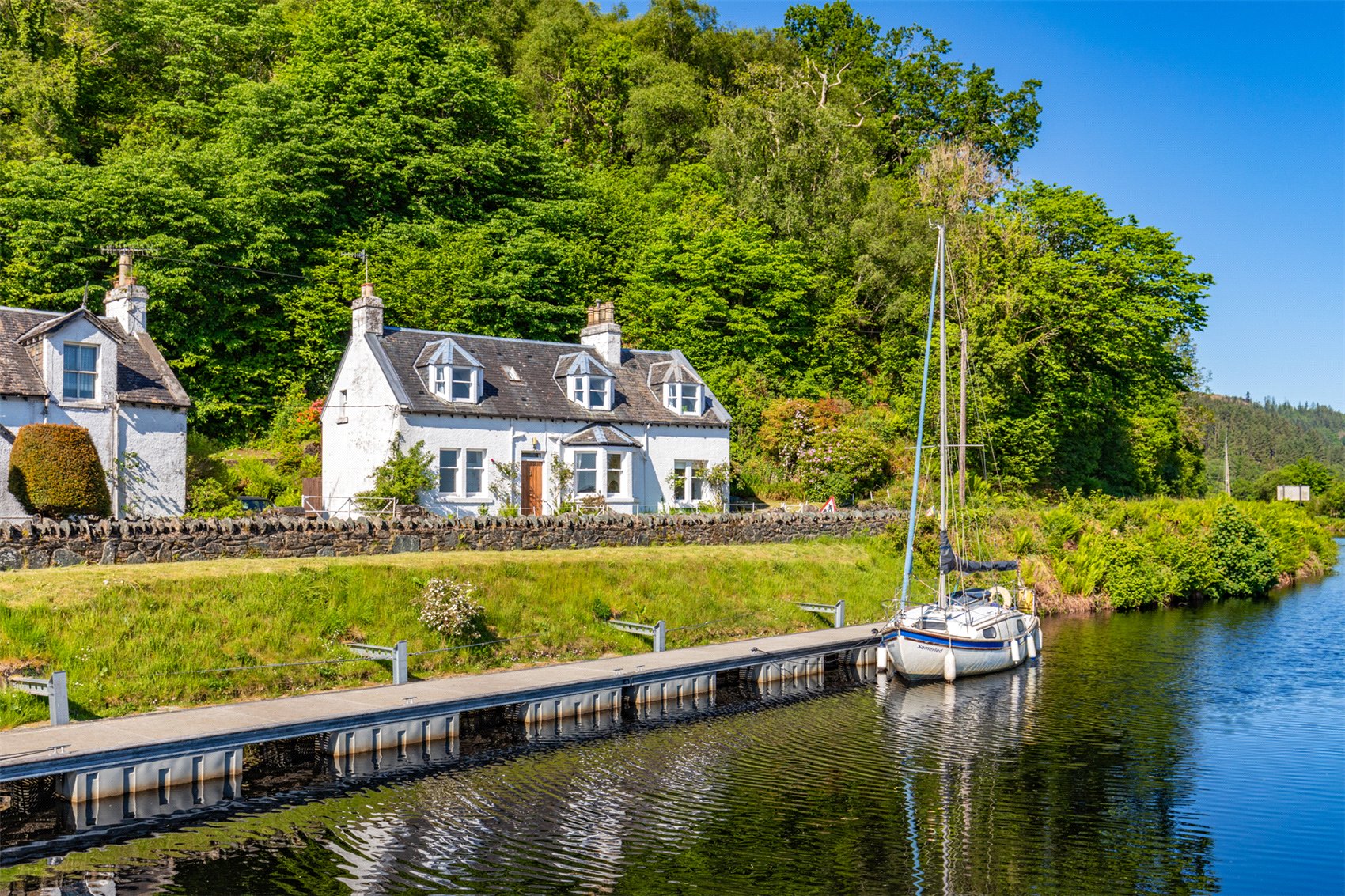 Barbae House is a delightful extended cottage type property which sits on a slightly elevated setting with uninterrupted views across the Crinan Canal, River Add, Dunadd Fort and beyond. The cottage itself is laid out over two easily managed light and bright levels with all front facing rooms enjoying wonderful uninterrupted waterscape and landscape views. Externally the property is completed in white painted render and neatly presented under a dark grey slate roof.