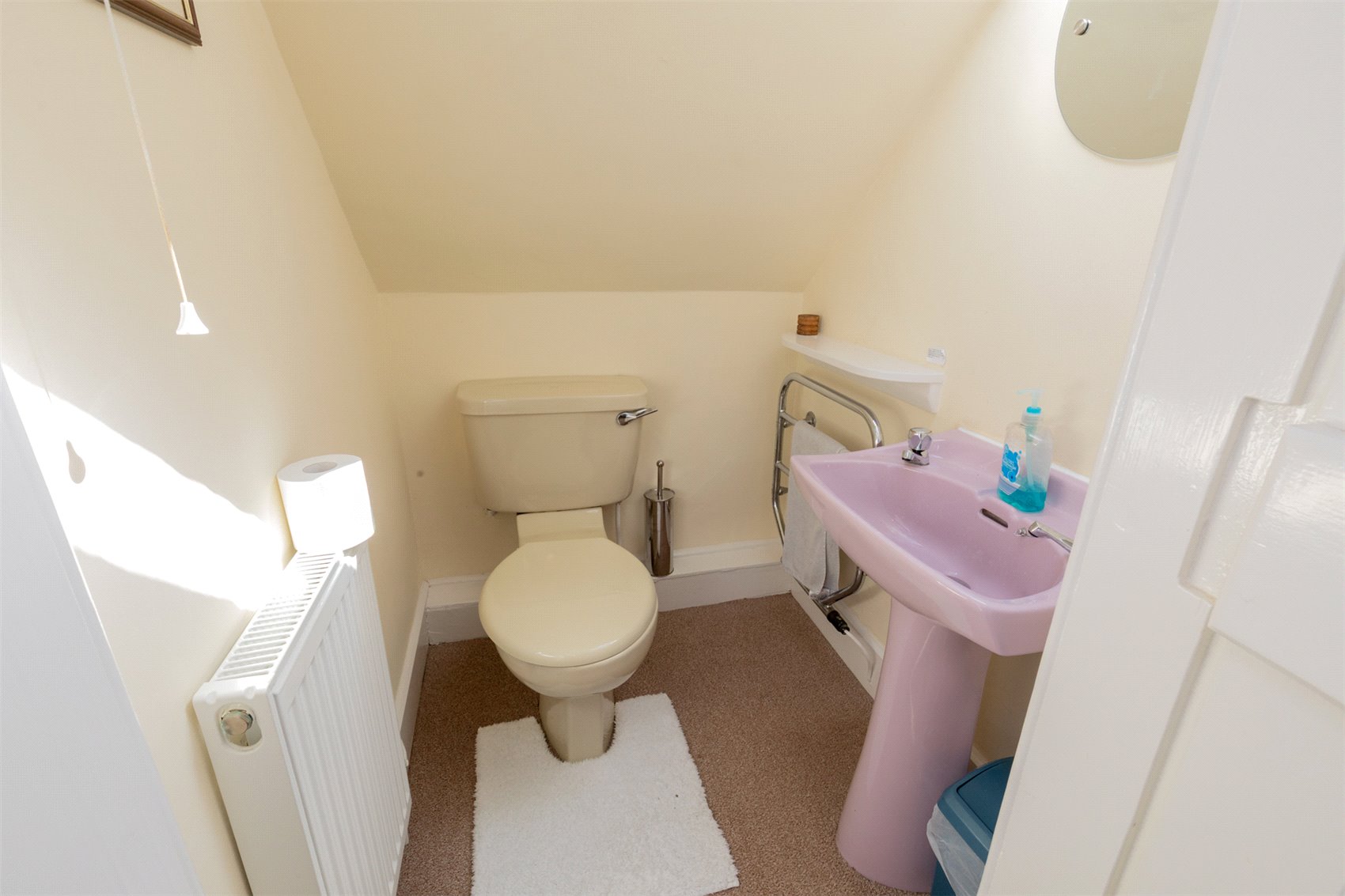 Via carpeted staircase to half landing, door leading to rear gardens, first floor landing to bedroom 1 (principal) with window to front and side gardens, exposed Edinburgh press, fitted cupboard, wc with Velux window, bedroom 2 with window to front, landing with good linen stores, family bathroom with overhead electric shower, bedroom 3 with window to side and front.