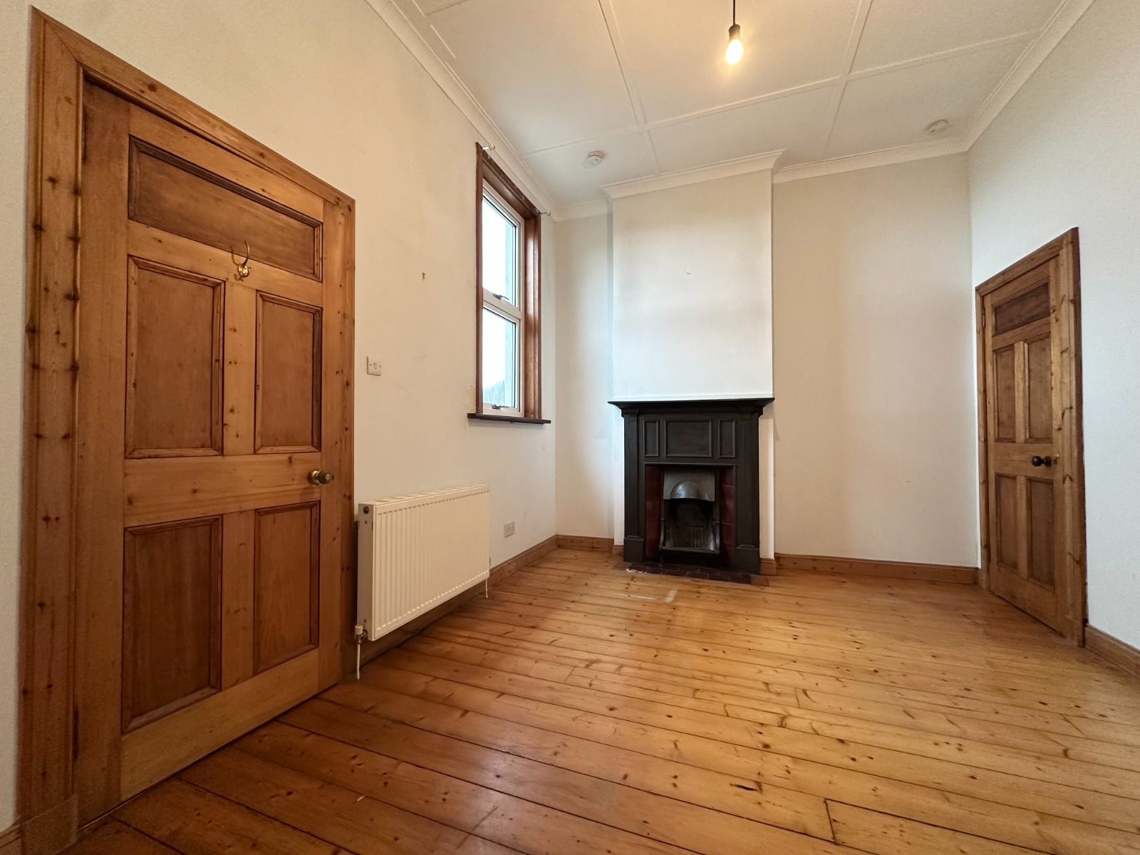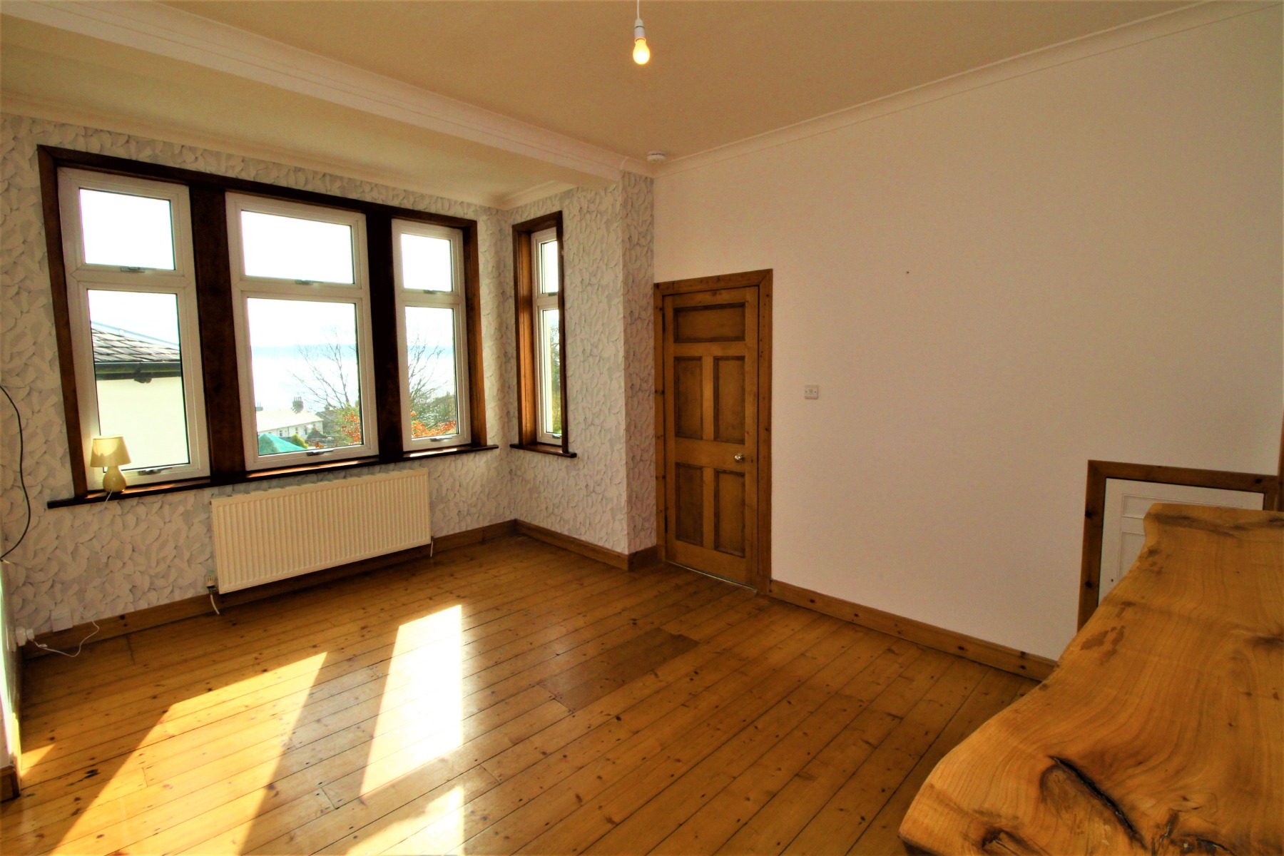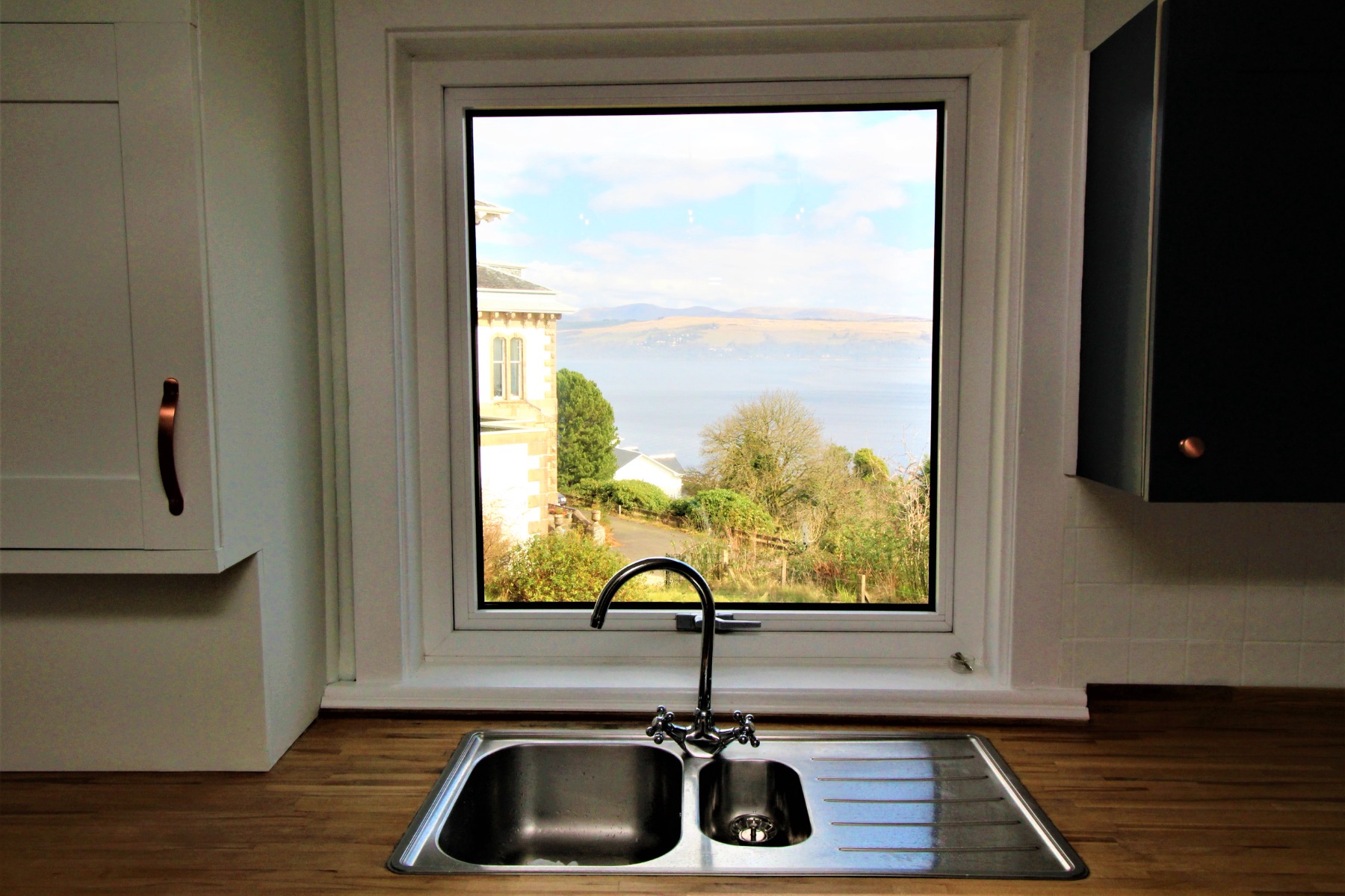 This south facing property has been finished to a high standard with timber varnished floors throughout and consists of: a spacious lounge with brick built fire surround with an efficient Nordpeis wood burner and spectacular views of the water and the community gardens. A modern styled kitchen with wall and base kitchen units with integrated electric oven and gas hob and yet more amazing views of the water and hills in the distance. Two double bedrooms with original cast iron fire surrounds and spectacular water views. The family bathroom is spacious with a corner bath with electric shower above, toilet and modern wash-hand basin in a vanity unit.