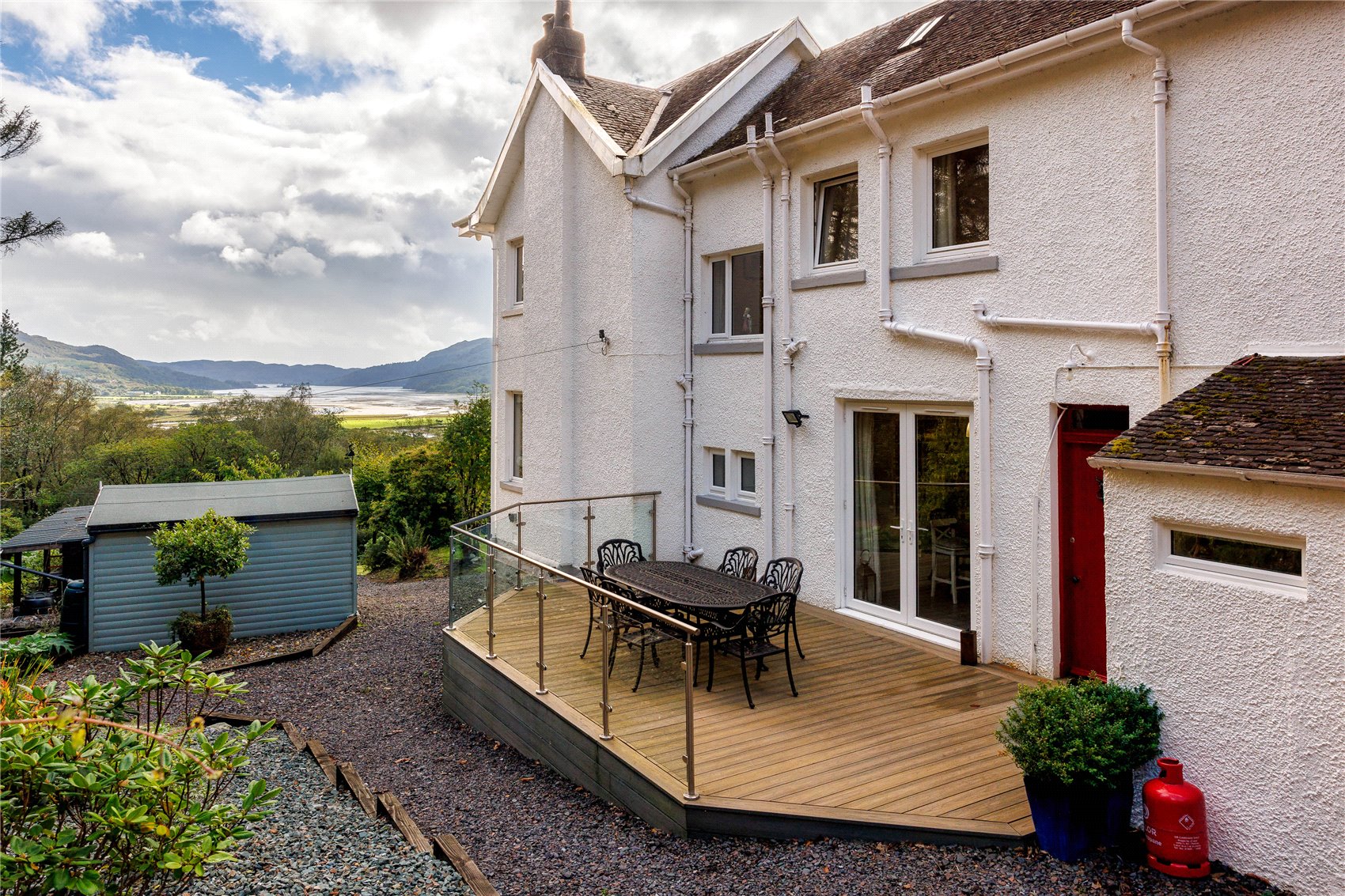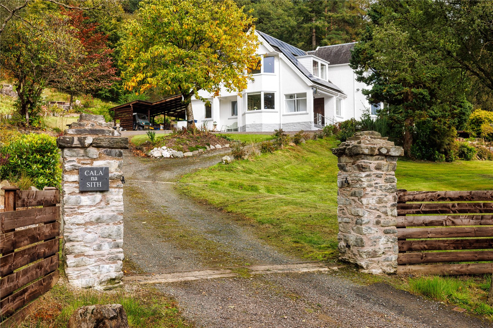 Cala-Na-Sith is a detached house in west highland style, and it is presented in first class condition both internally and externally. The house is of white painted harled exterior over a grey painted stone base course, the roof is of substantial slate with variable pitches and projecting dormer window formations. The accommodation is laid out over two light and bright and easily managed levels the front rooms taking maximum advantage of the spectacular and sometimes dramatic southerly aspects. Throughout the house there has been the sensitive preservation of period features, cornices, dado rails, heritage radiators, traditional ironmongery to name a few. Kitchen and bathroom ware are high quality level, all teamed very tastefully with deluxe range ceramics. Externally, the gardens and grounds have similarly been subject to significant improvement, clearance work has opened the gardens and allowed them to breath, paths and walkways and bridges over the streams have been created, there has been strategic plantings of alpines and heaths and the addition of numerous versatile and useful outbuildings.