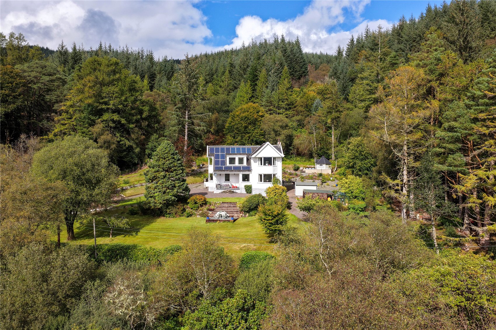 Cala-Na-Sith is an attractive detached country house which dates from 1929, it is set amid woodland and country gardens at Glendaruel which is just north of Colintraive in mid Argyll & Bute. The house has a woodland backdrop and an elevated setting from where there are sublime southerly aspects over surrounding countryside, the head of Loch Riddon with its steep mountains and glens that form the panorama.