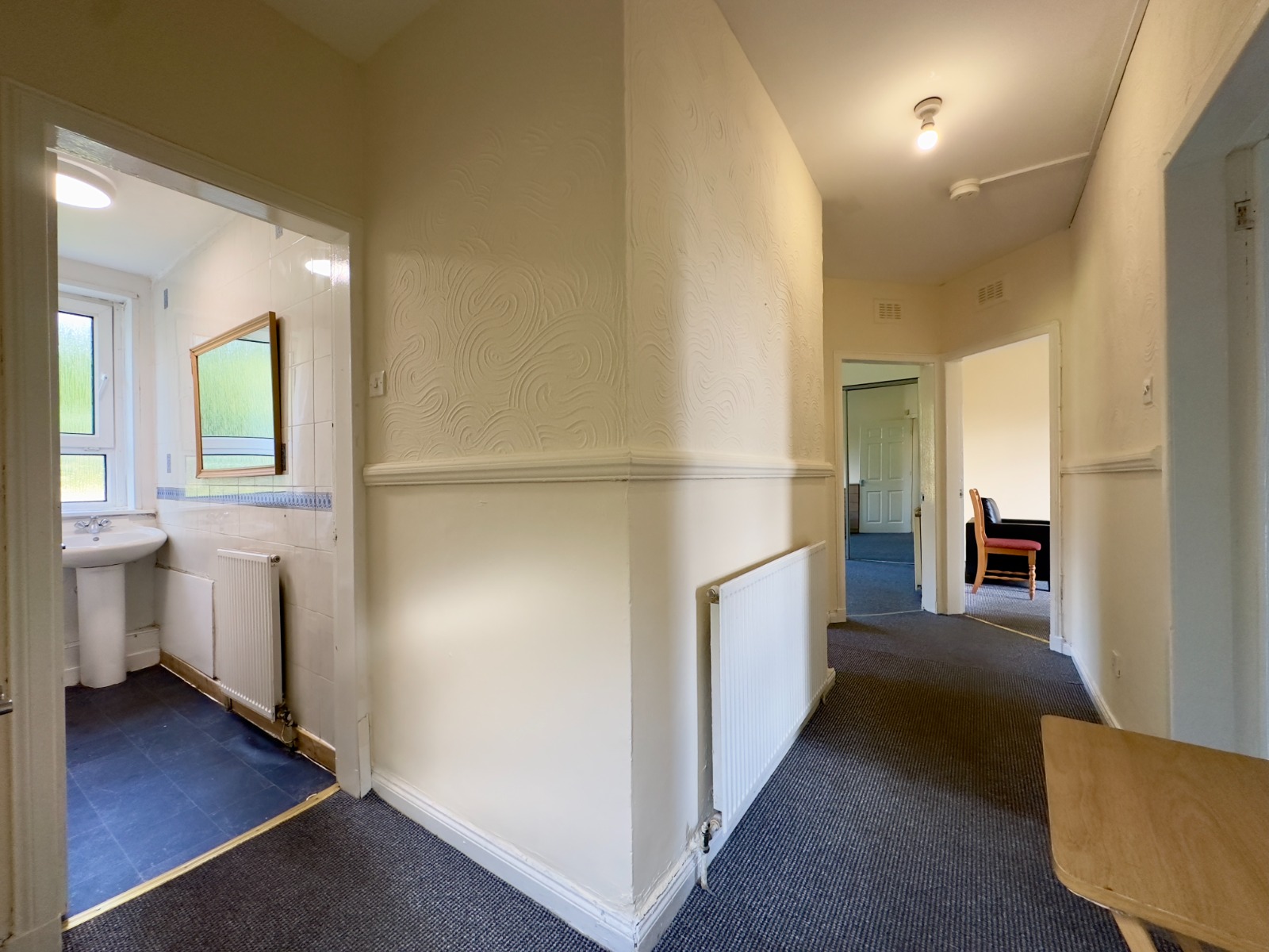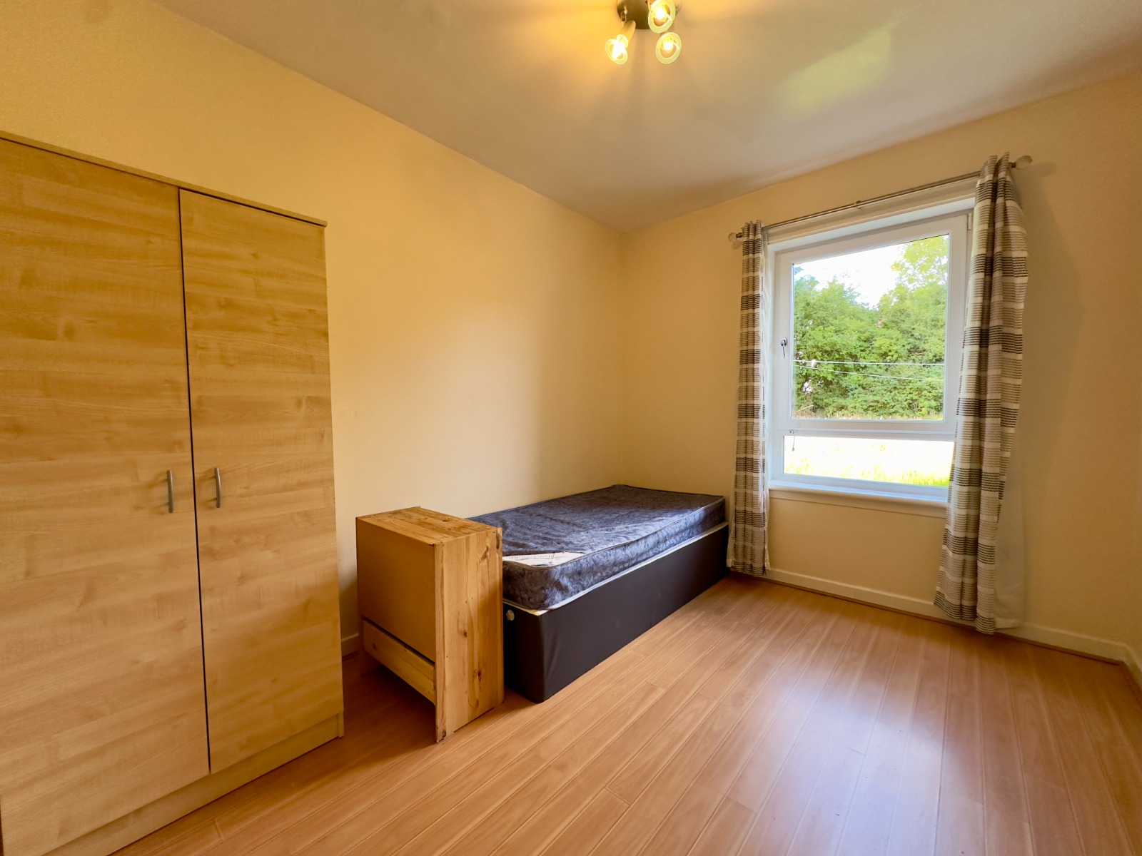 The property consists of main door leading into reception hall, large bright spacious front facing lounge, modern fully fitted kitchen with integrated oven and hob & hood and white goods, two good sized double bedrooms, master with built in mirrored wardrobe and a three-piece bathroom suite with over bath shower.