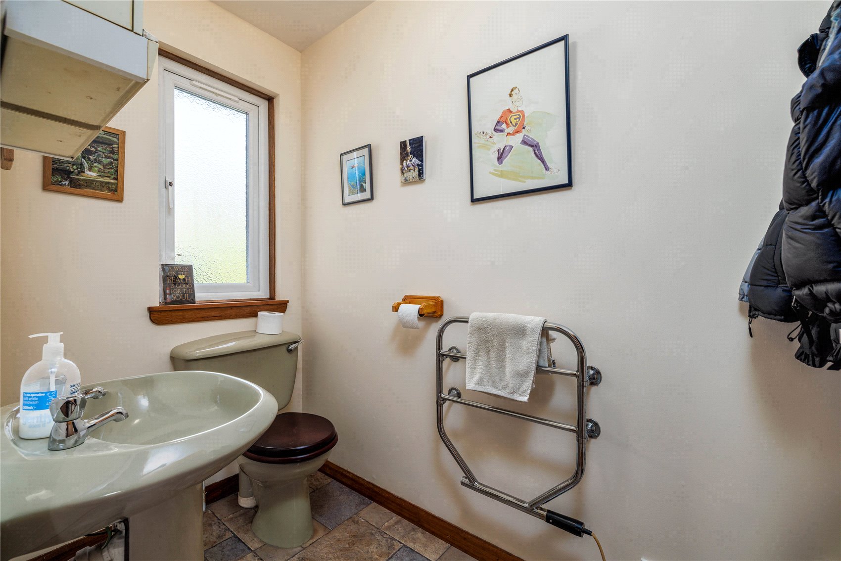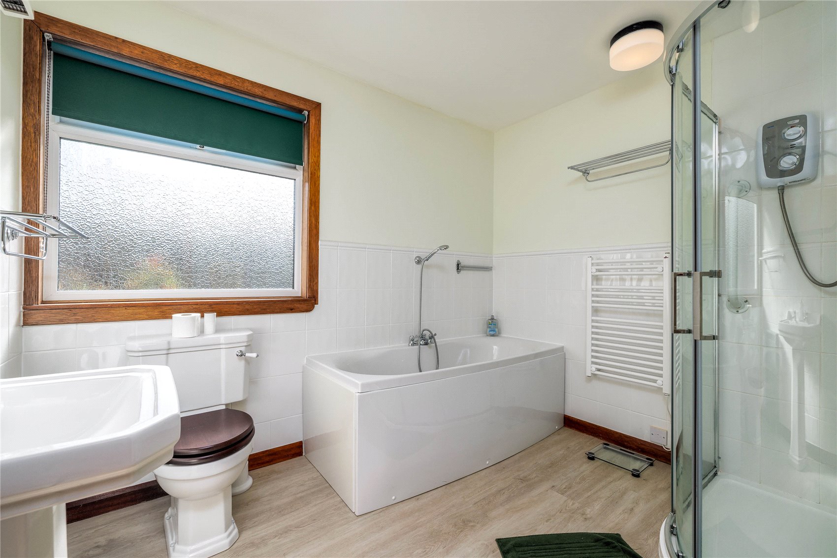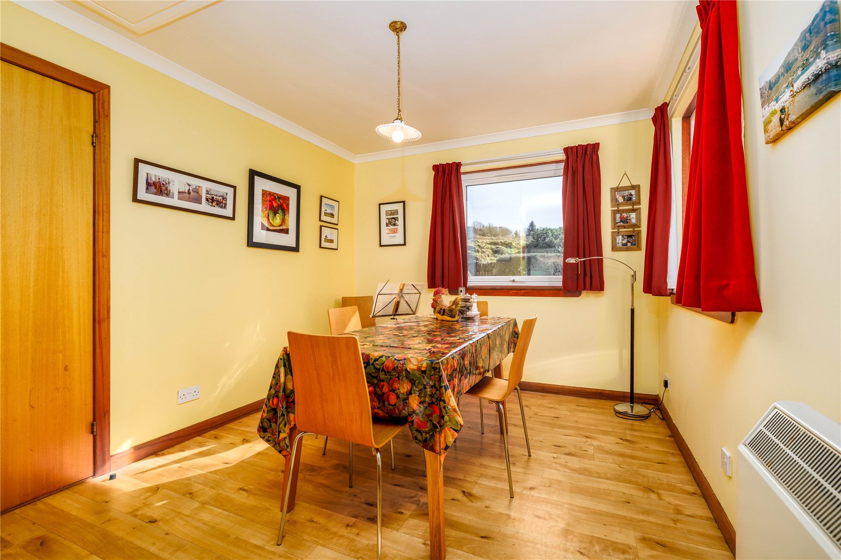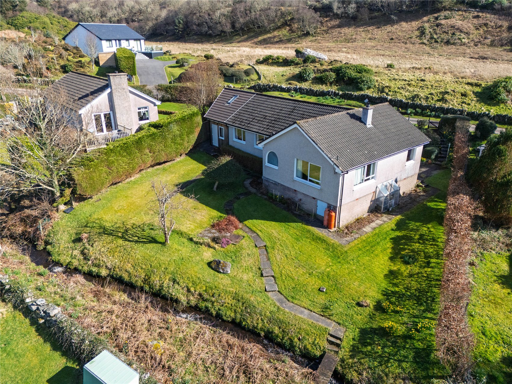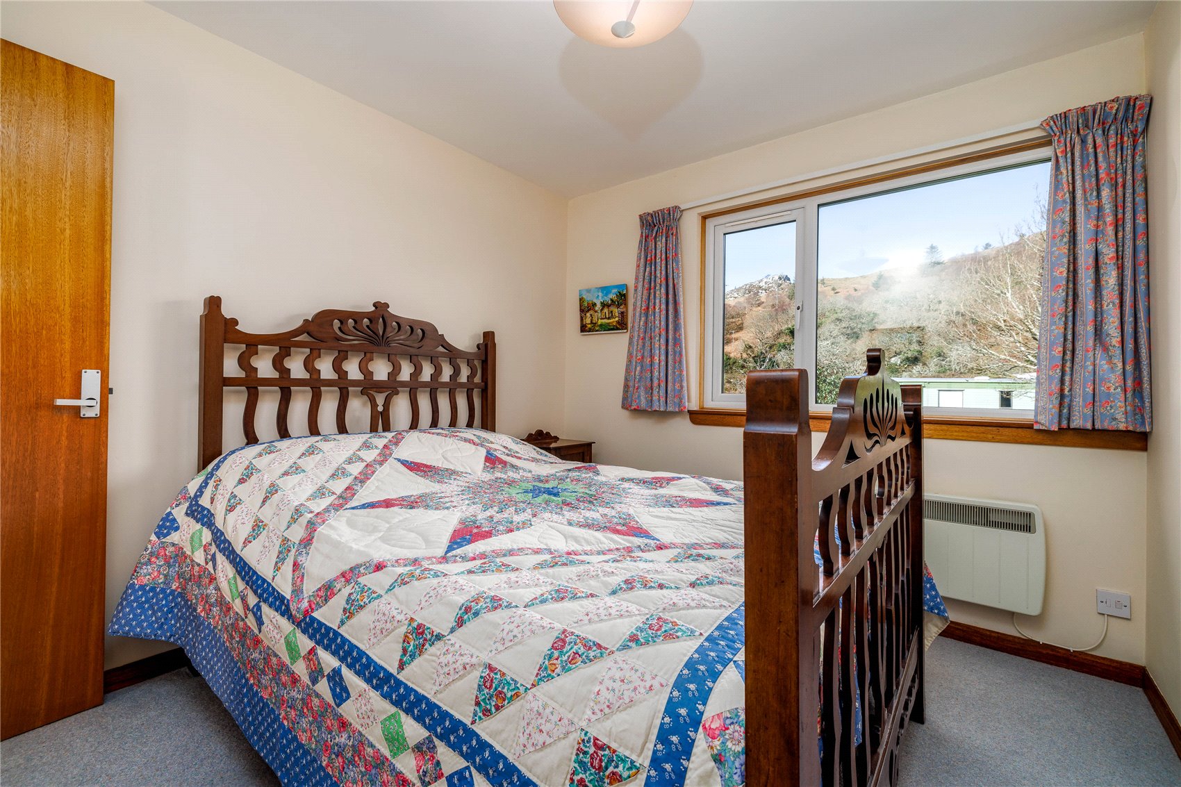 Private tarmac driveway offering vehicular hard standing and parking. Via a personal gate to paved pathway leading to the property’s front door. The front gardens and house frame a paved patio area, which is ideal for alfresco sitting, dining and entertaining guests. The front gardens have been beautifully planted with an array of colourful flower beds and bushes, offering year-round interest, all bounded by a hedge. The paved pathway wraps around the extent of Creag Mhor to rear gardens which are laid mainly to lawn with a pathway that wends its way down to a pretty stream which brings a great sense of peace and tranquillity to the gardens; a timber footbridge crosses the stream to an area of wild garden which is further bounded by a stone wall. The gardens are by design relatively low-maintenance and are wonderfully sheltered and all bounded by a combination of hedging, close board fencing and a stone wall.