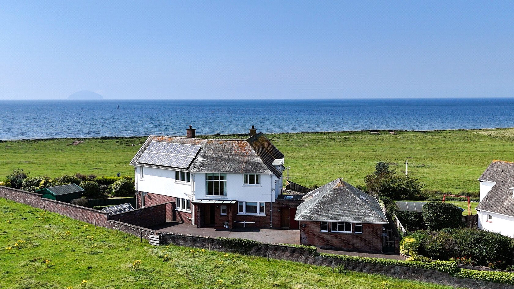 The home commands a stunning elevated position with unrestricted views over the Firth of Clyde embracing near and far views of Turnberry, the golf course, coastline, lighthouses, Ailsa Craig, Arran, the Mull of Kintyre, and on a clear day the Antrim Coast.