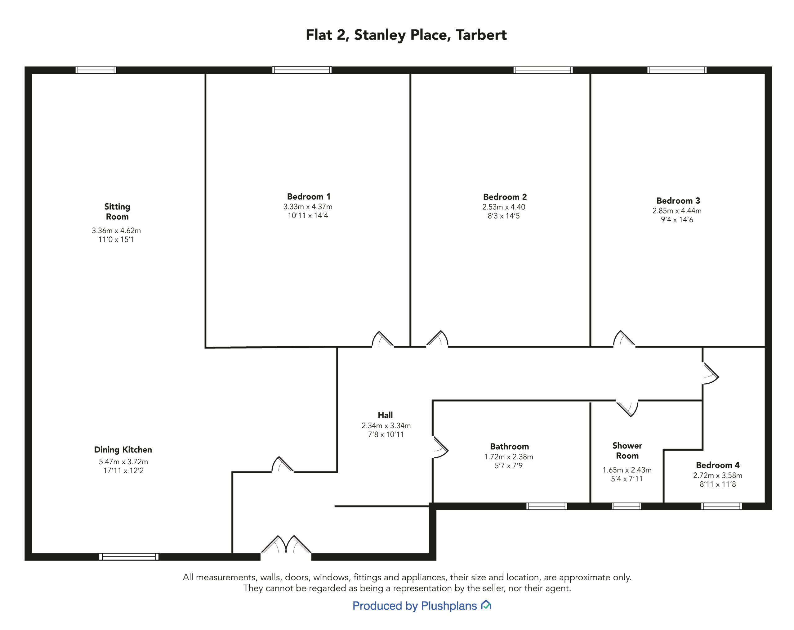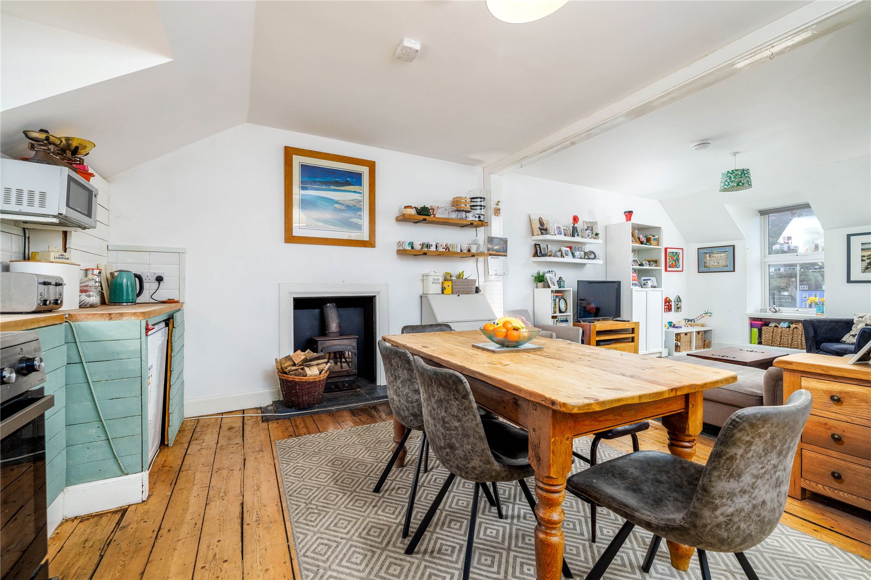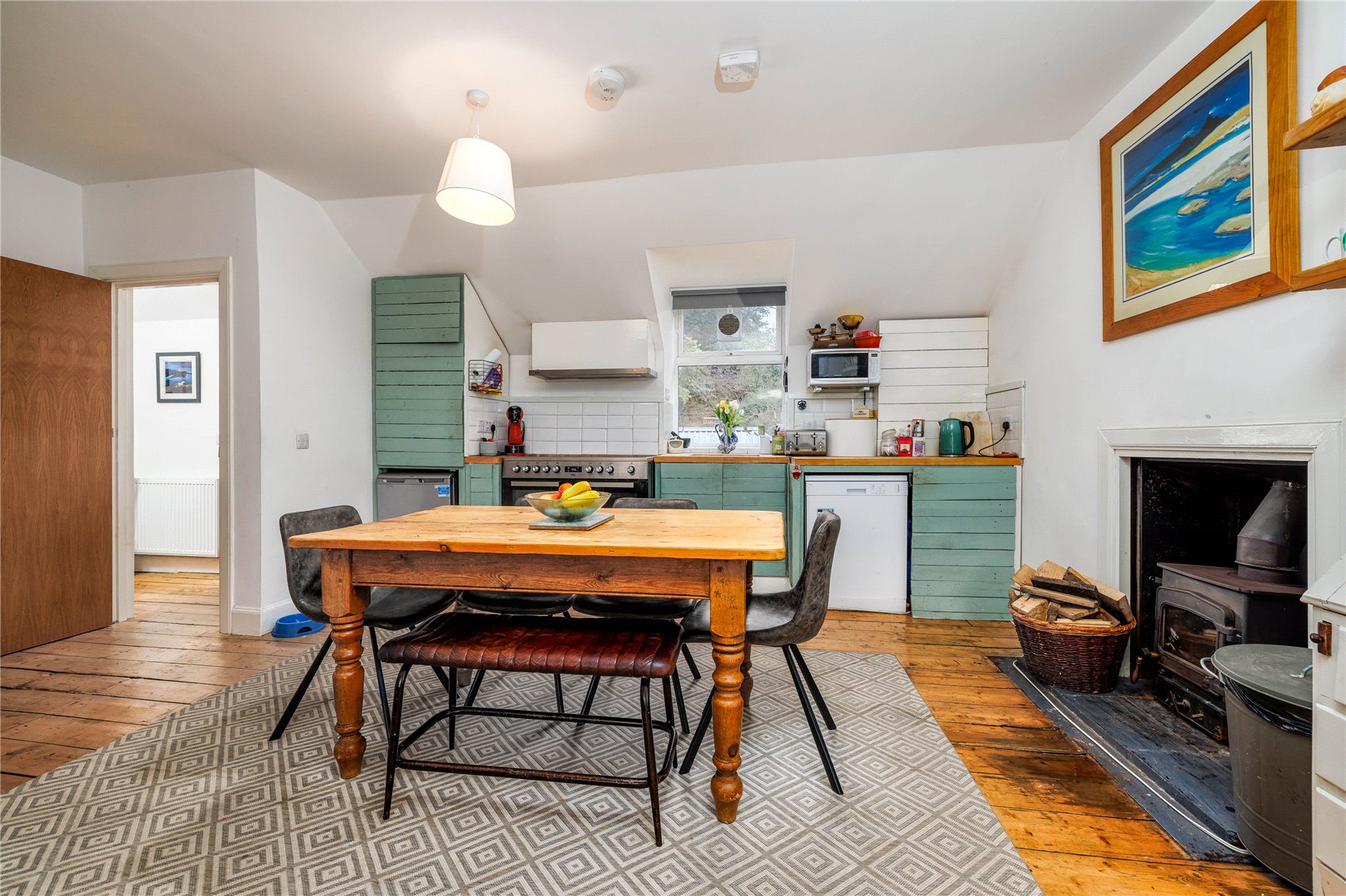 Outer door to entrance reception hallway with restored pine floorboards, cupboard housing the electric central heating boiler, access hatch to attic space. Door to stylish open plan kitchen to dining to sitting room, the kitchen is in galley style with metro splashback tiling, the dining area is warmed by a log burner inset on a slate tile hearth and the sitting room has a front facing window with harbour aspects, exposed pine floorboards, the bathroom has a plumbed shower over the bath and a glass screen metro splashback tile, velux to rear and expel air fan. Bedroom 1 with window to harbour, and window box stores, exposed pine floor boards, bedroom 2 with window to harbour, carpet flooring, bedroom 3 with window to harbour, exposed pine floor boards and half Edinburgh press, bedroom 4 with exposed pine floor boards and half Edinburgh press, window to rear, and plumbing for domestic appliances, shower room completed with metro splashback tile, velux to rear and expel air fan.