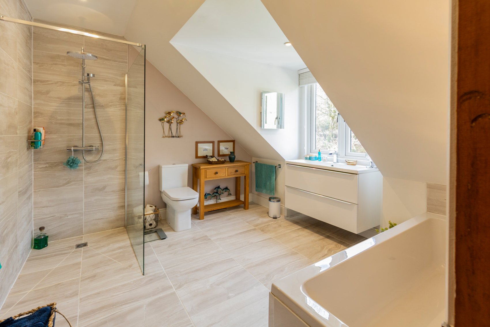 Via a fitted staircase with carpet running to half landing with 1 velux window, first floor landing to contemporary and stylish family bathroom with separate walk-in shower enclosure and heated towel rail, window to rear gardens, loft access. Bedroom 2 with window to rear gardens and access to property eaves, bedroom 3 with ample fitted wardrobe space and window to waterscape, bedroom 4 (master) with access to property eaves and window to waterscape views.