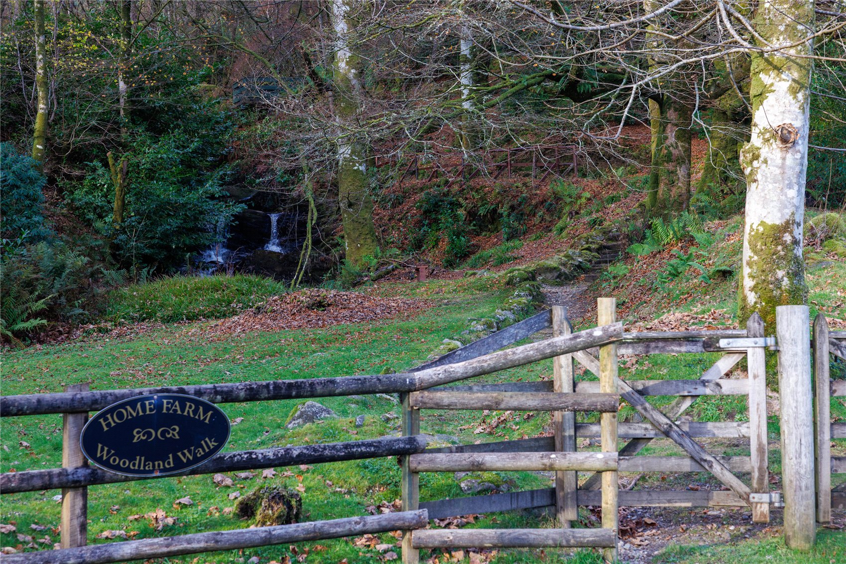 To the western side of the minor road is an area of semi ancient native woods and a block of conifers. Woodland walks have been created alongside the clear waters of a hill stream with tumbling waterfalls and holding pools, cantilevered viewpoints and seating benches. 18.07 acres (7.31Ha)