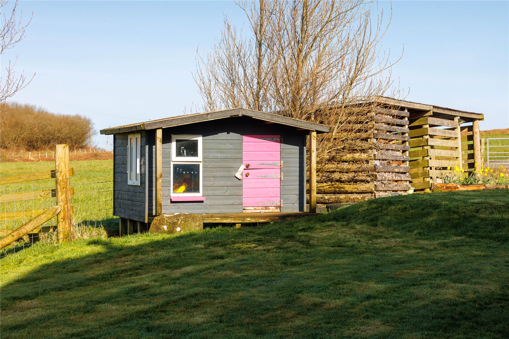 Detached timber general purpose shed, detached timber log stores, detached timber workshop with utility area. Outbuilding housing the relaxation room, sauna and shower facility with floor to ceiling window’s enjoying waterscape views.