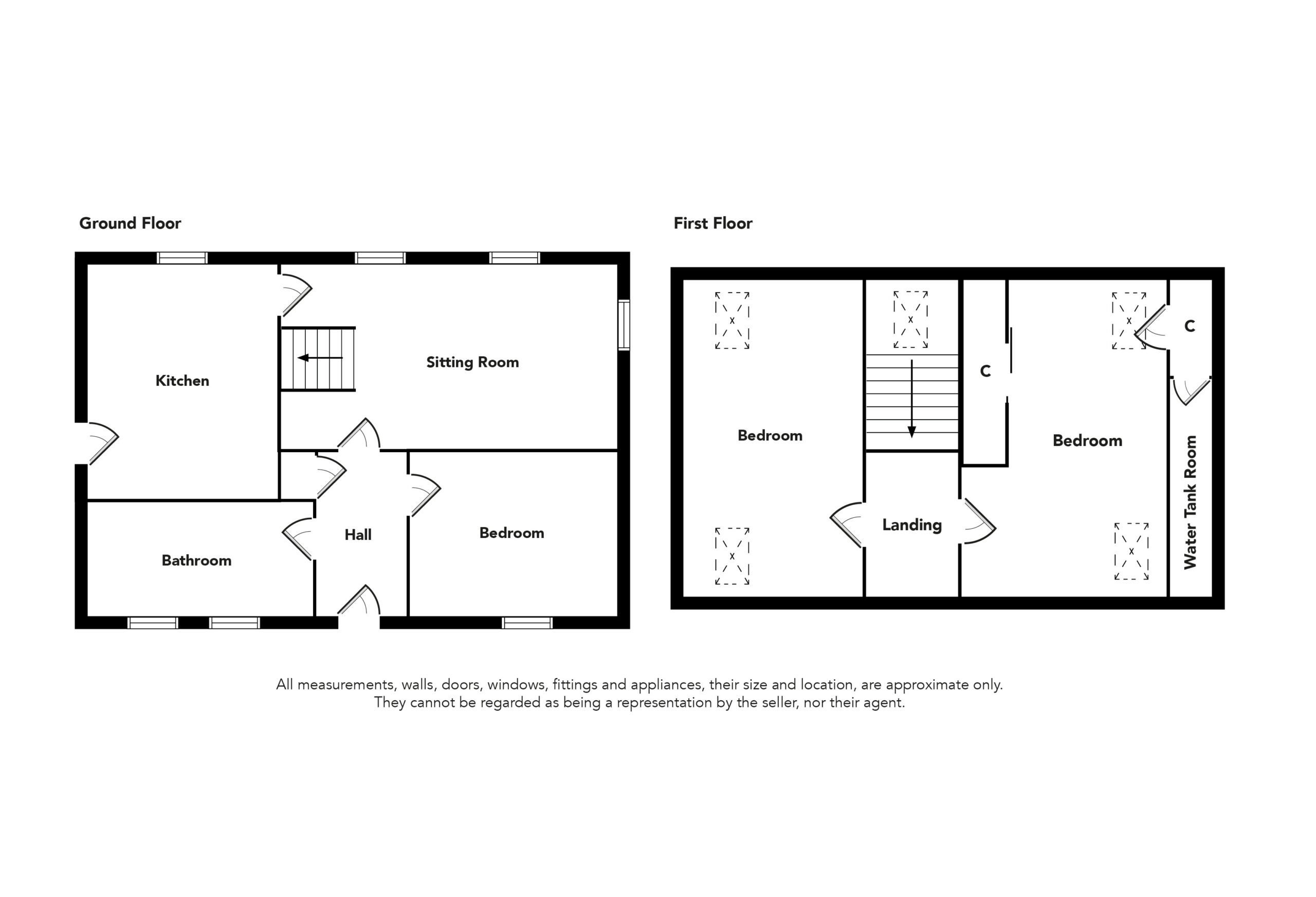 Via a carpeted staircase with laundry pulley, first floor landing with access to property eaves, bedroom 2 with 2 x velux windows to countryside and waterscape views, bedroom 3 with double fitted mirrored wardrobes, access to property eaves, 2 x velux windows to countryside and waterscape views, linen cupboard housing the hot water tank.