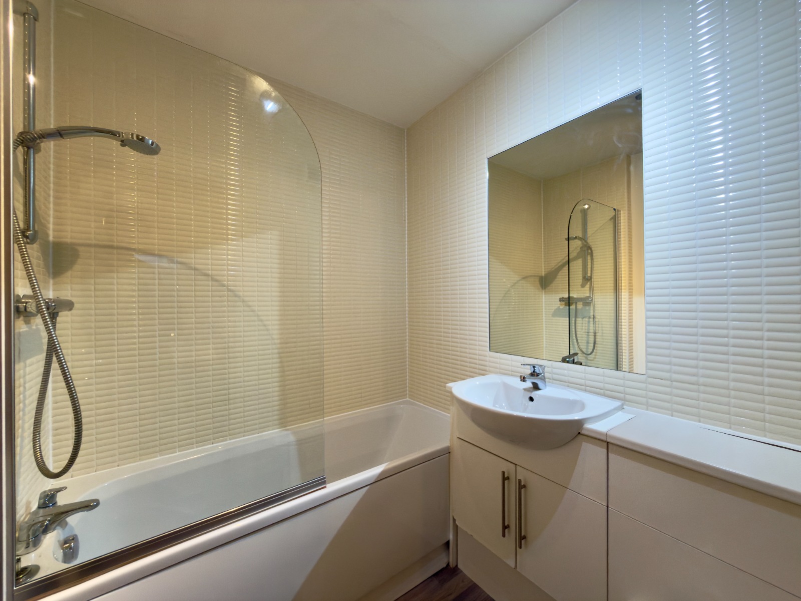 This impressive property offers spacious accommodation comprising a welcoming reception hallway with great cupboard storage throughout, three double bedrooms, one en-suite, an ideal sized bathroom with modern white suite and over bath shower and a modern fitted kitchen with wall and base mounted units, the kitchen includes fitted appliances such as fridge, freezer, washing machine, gas hob, oven and cooker hood. No common Lounge