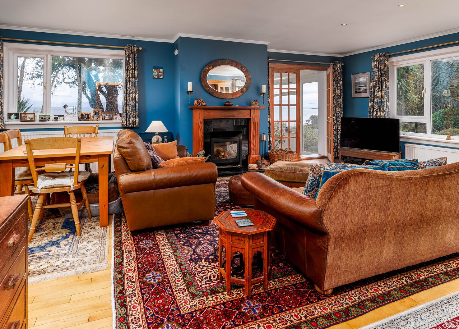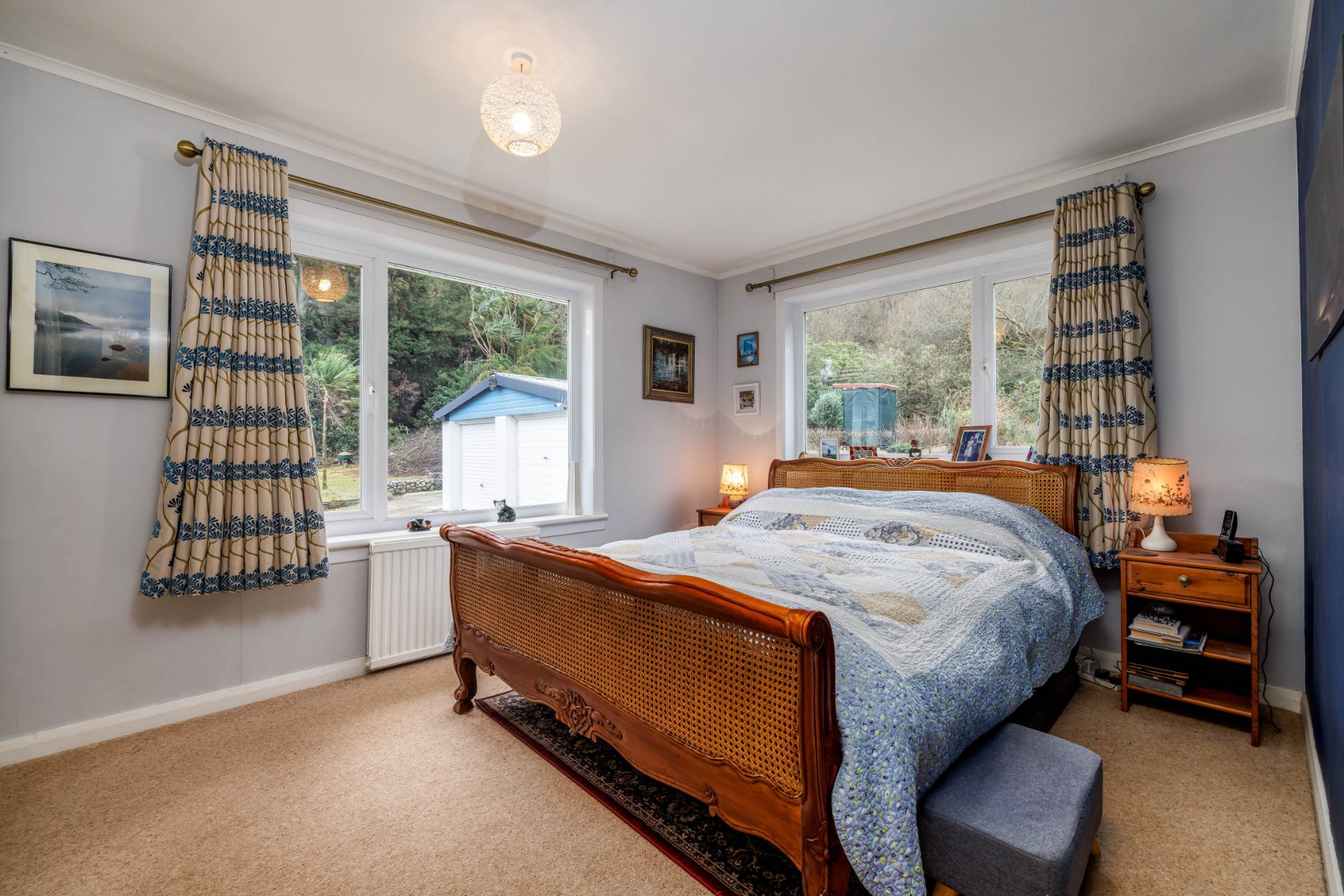 Kildonan is a delightful, detached bungalow- style home in a situation of great natural scenic beauty. The house occupies a wonderful sheltered ‘amphitheatre’ with surrounding landscape formed by steep-sided hills and woodlands underplanted with rhododendrons and from the sheltered position there are sublime aspects out across the seascape of the Kilbrannan Sound towards the land mass of the island of Arran adjacent.