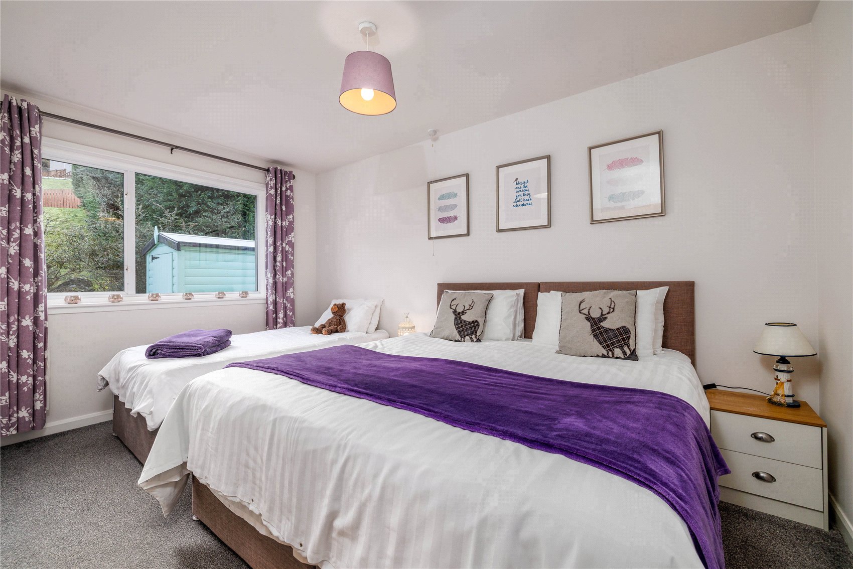 Devana Croft is completed in pink quartz stone harled exterior over a facing brick base course and the whole is under a tiled roof. The accommodation which is laid out over a single easily managed level is light and bright and the front facing rooms benefit from the most wonderful panoramic aspects. In recent times Devana Croft has been subject to a programme of modernisation and improvement which includes a new fitted kitchen, new bathrooms, installation of a warming log burner, new internal doors, a new central heating boiler (2022), and externally the relaying of a sheltered patio and a new garage door.