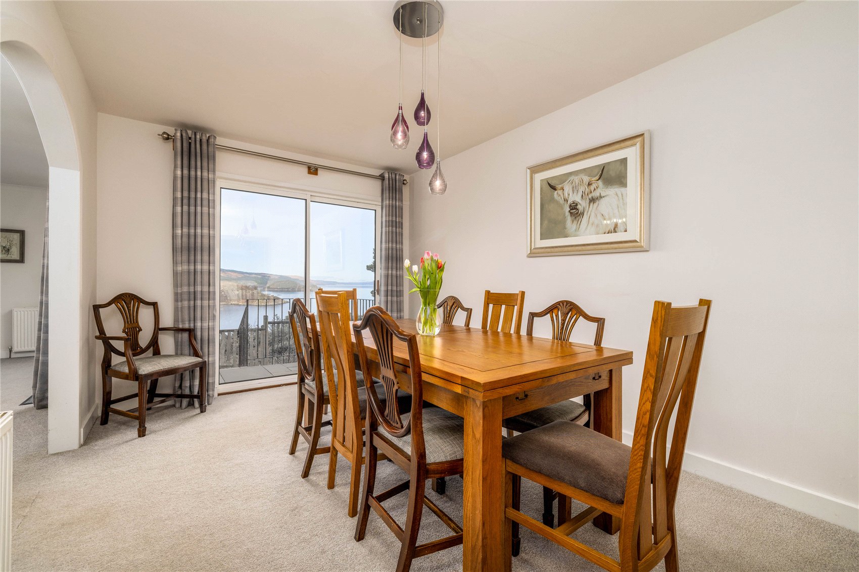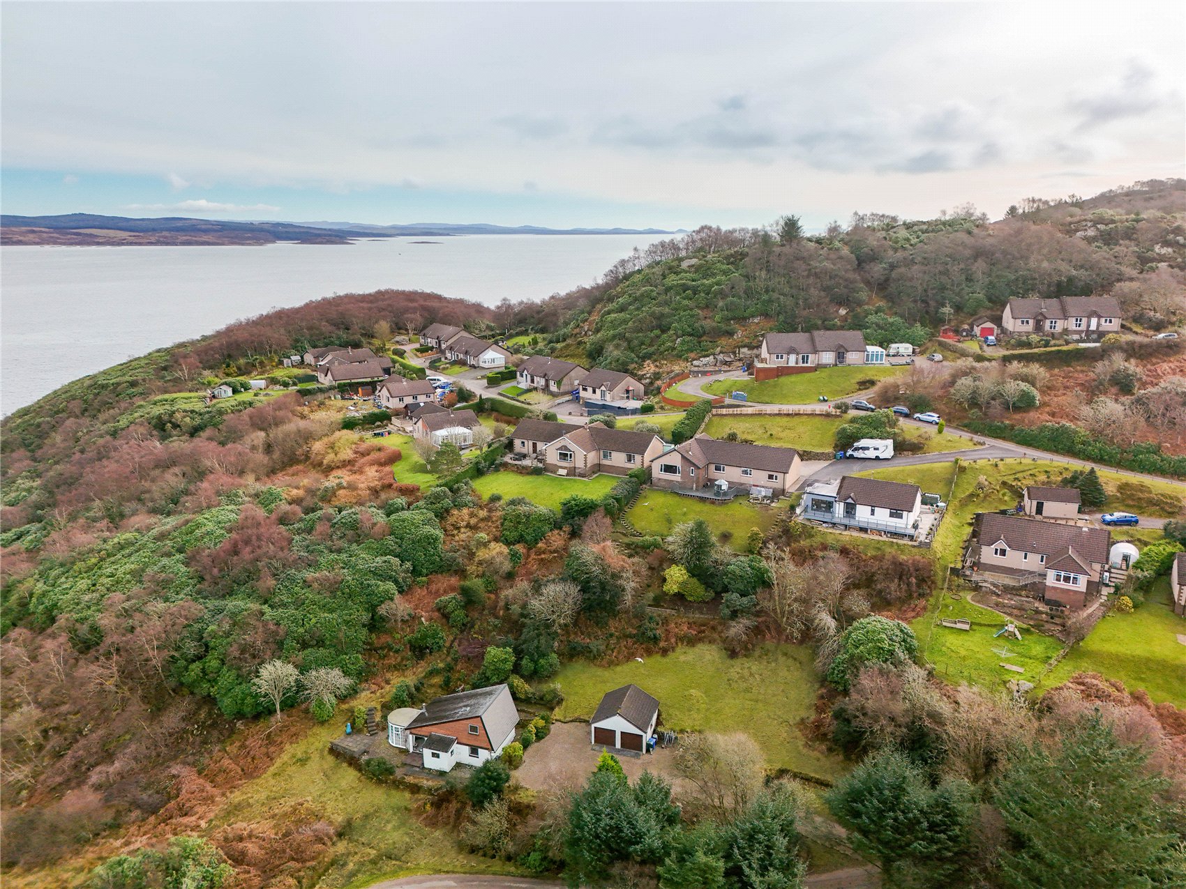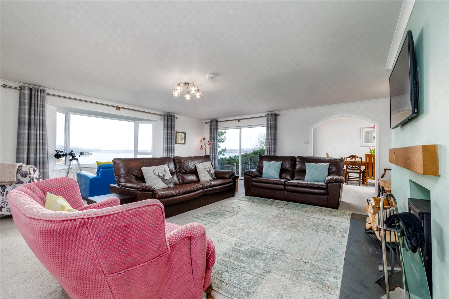 A generously proportioned detached bungalow with spectacular panoramic views across the entrance to Tarbert harbour and north over Loch Fyne.