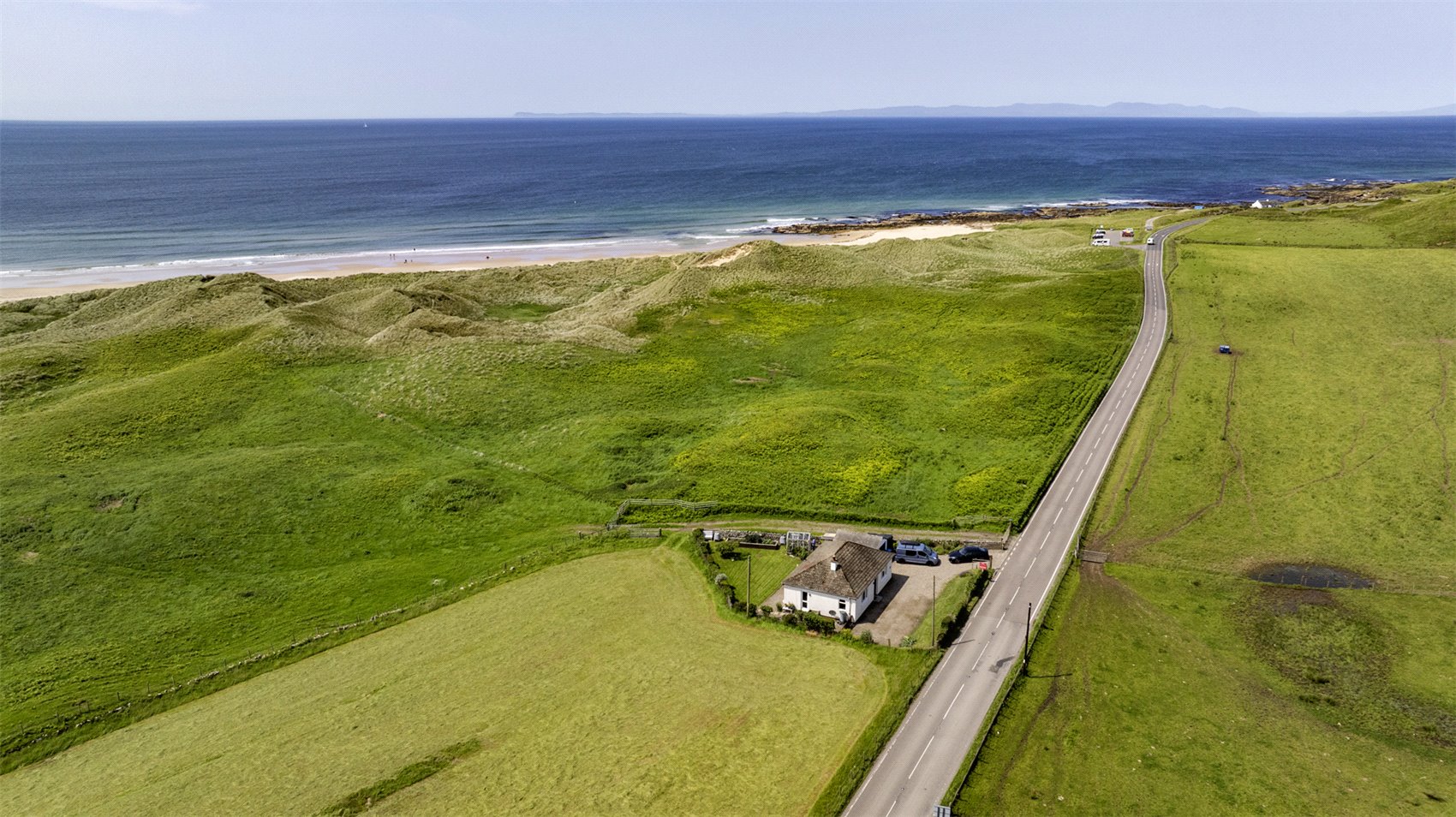 Ocean View Cottage is situated on the west coast of the Kintyre peninsula in an attractive coastal position. The property enjoys glorious sea views towards the northern tip of Northern Ireland, as well as Gigha, Islay, and Jura, and benefits from the mild climate created by the Gulf Stream. The western coast of Kintyre boasts numerous beautiful, unspoiled beaches—one of which lies directly opposite the property.