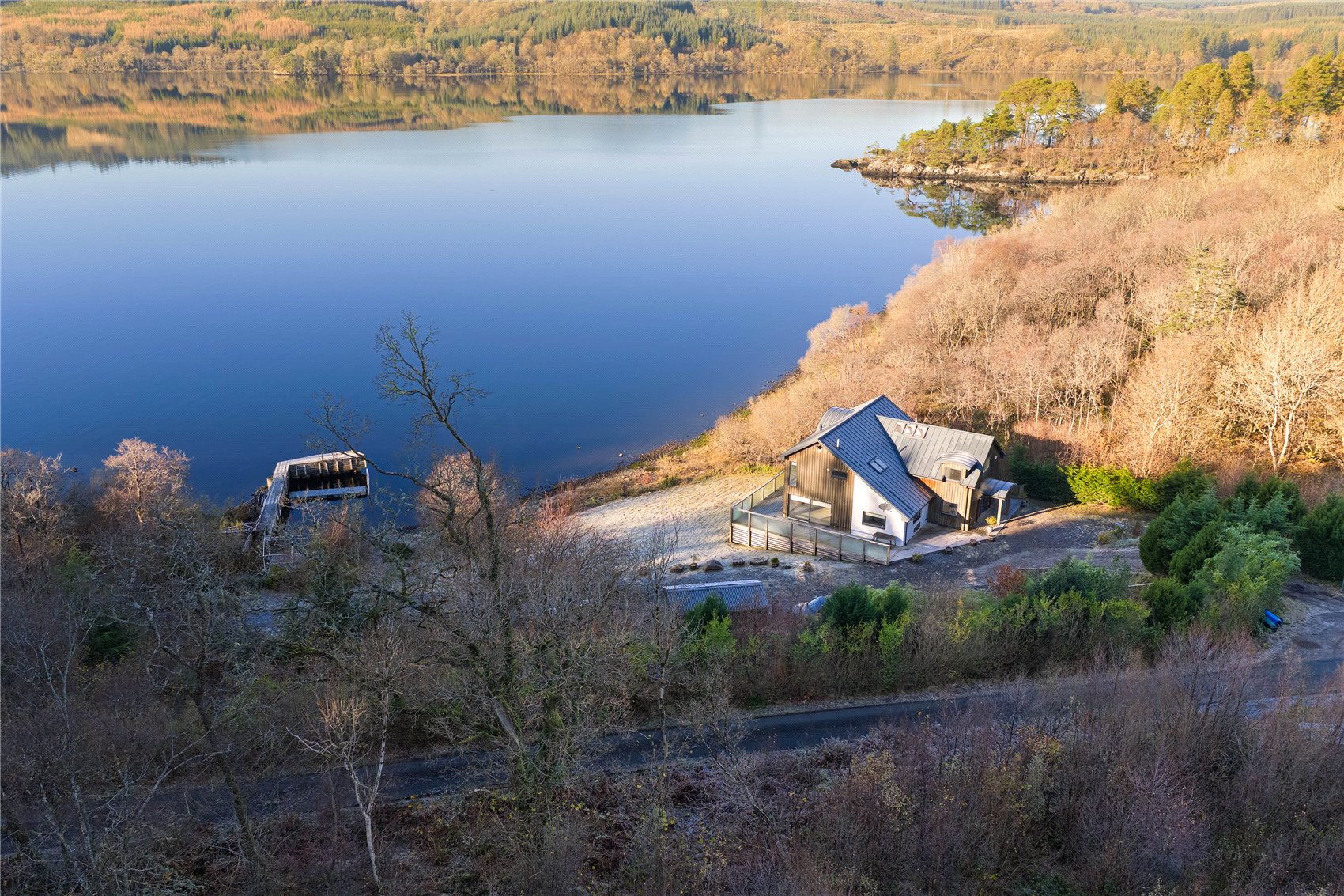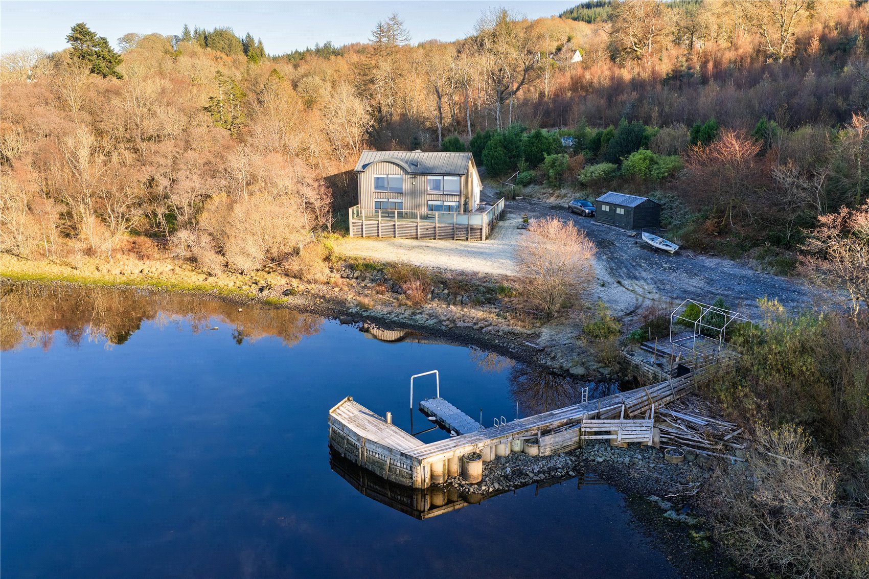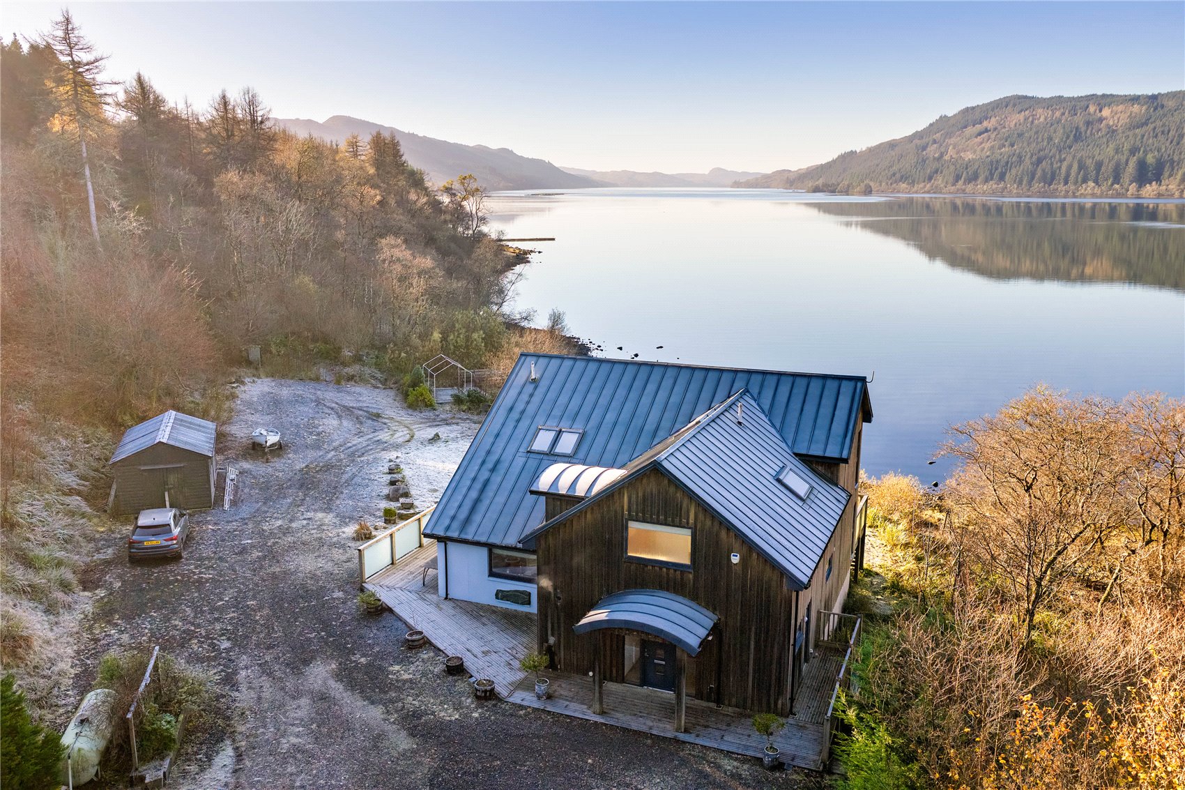 The house has been carefully considered and imaginatively conceived, the construction materials used externally blending perfectly with the typical west of Scotland landscape within which the property sits. A good-sized timber decking wraps around the extent of Salmons Leap from where there are utterly breath-taking views across Loch Awe. In turn, internally the property has been perfectly designed to offer low maintenance living.