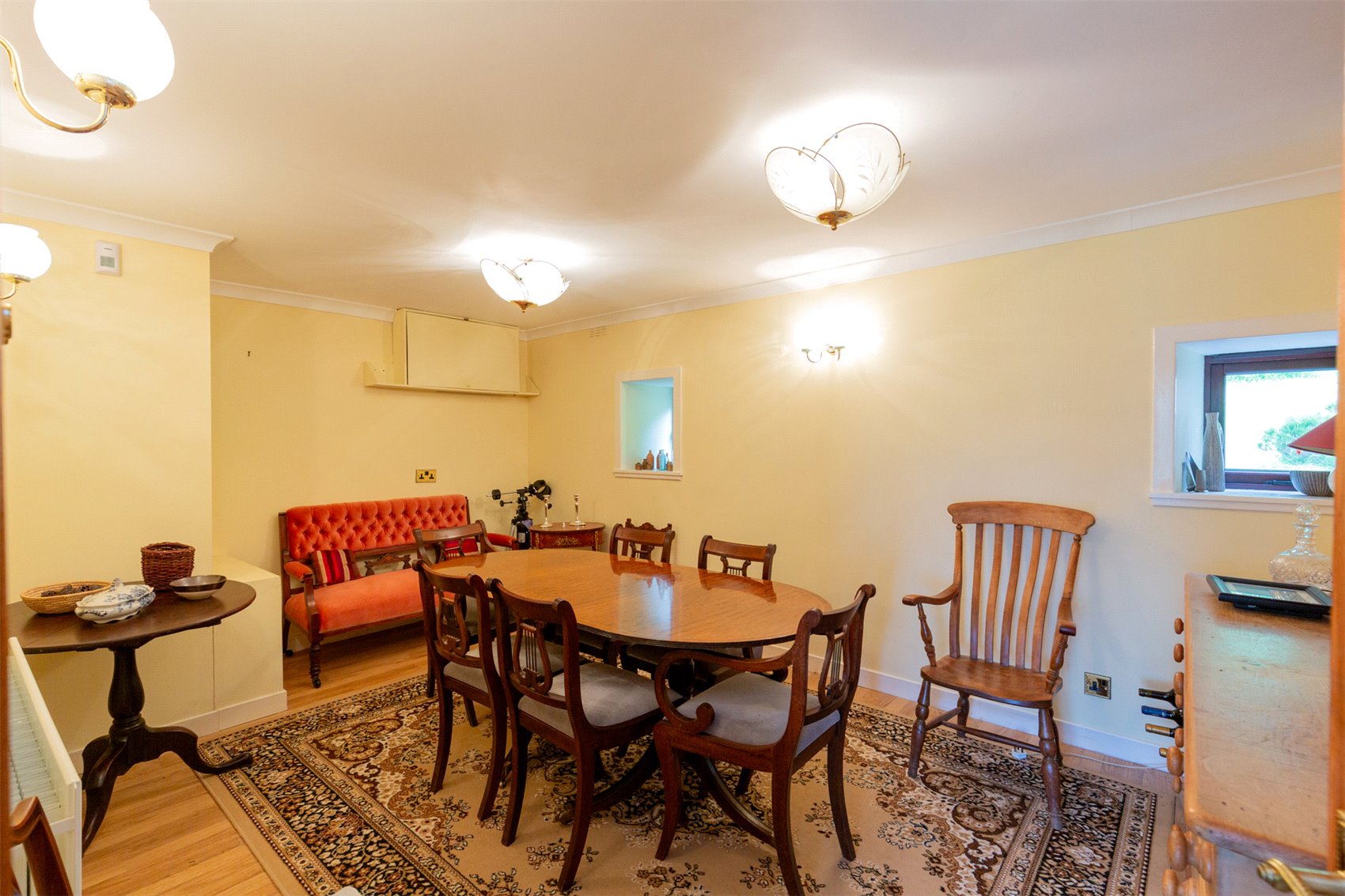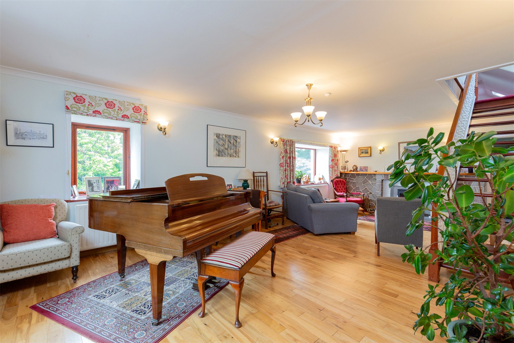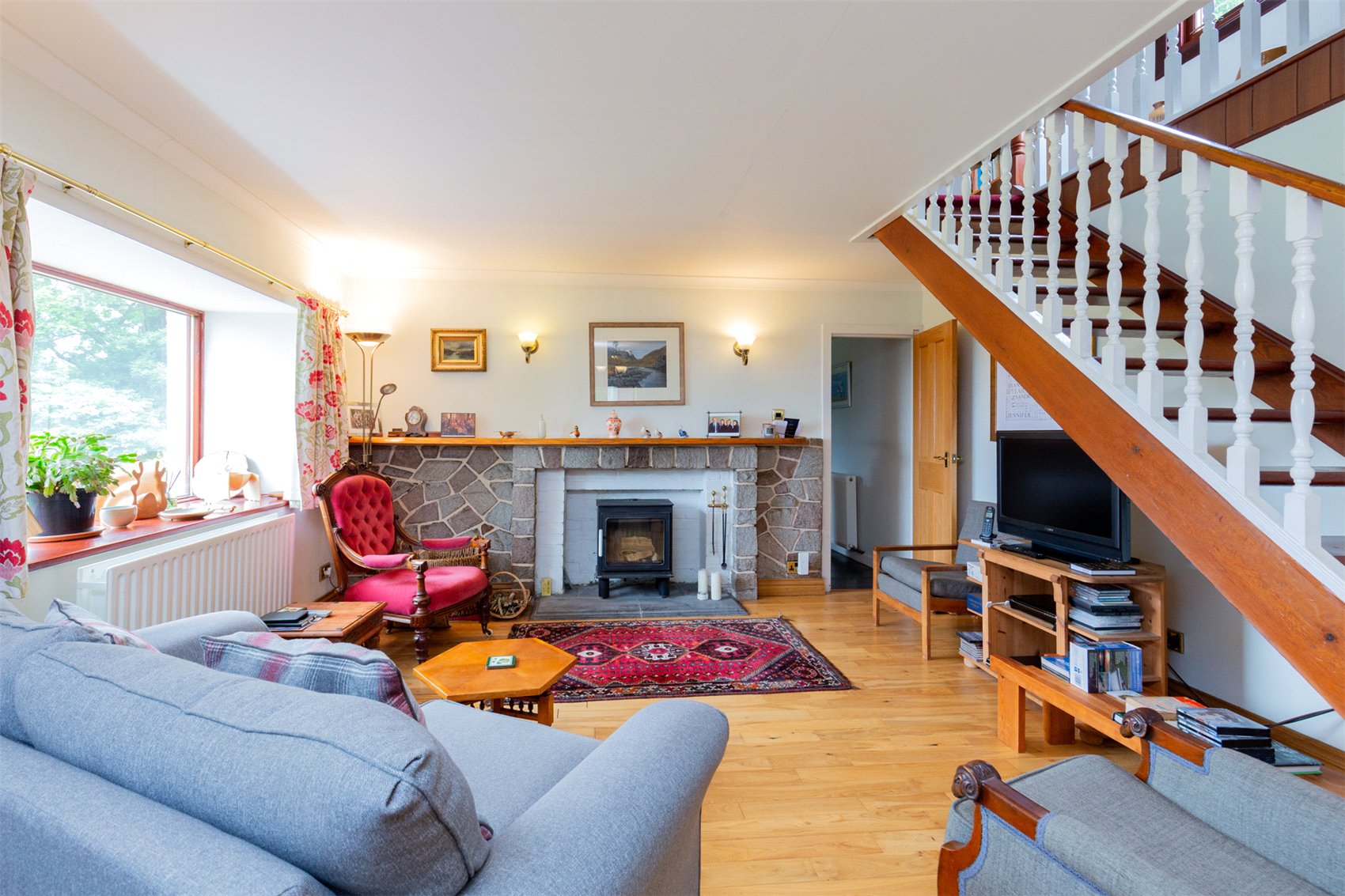 The house is finished in white painted rendered stone harled finish under a slated roof, dormer windows are slated and finished in wood preserved weatherboarding. Internally the house is presented in fine order with accommodation laid out over two easily managed levels.