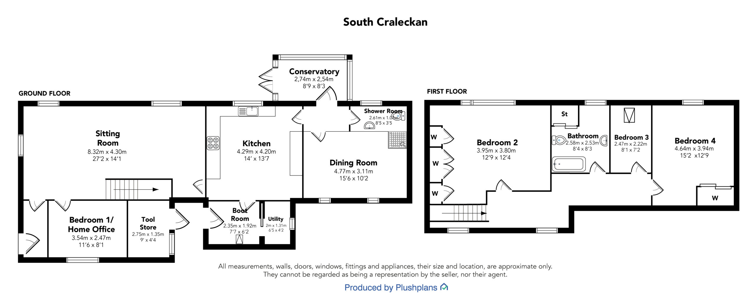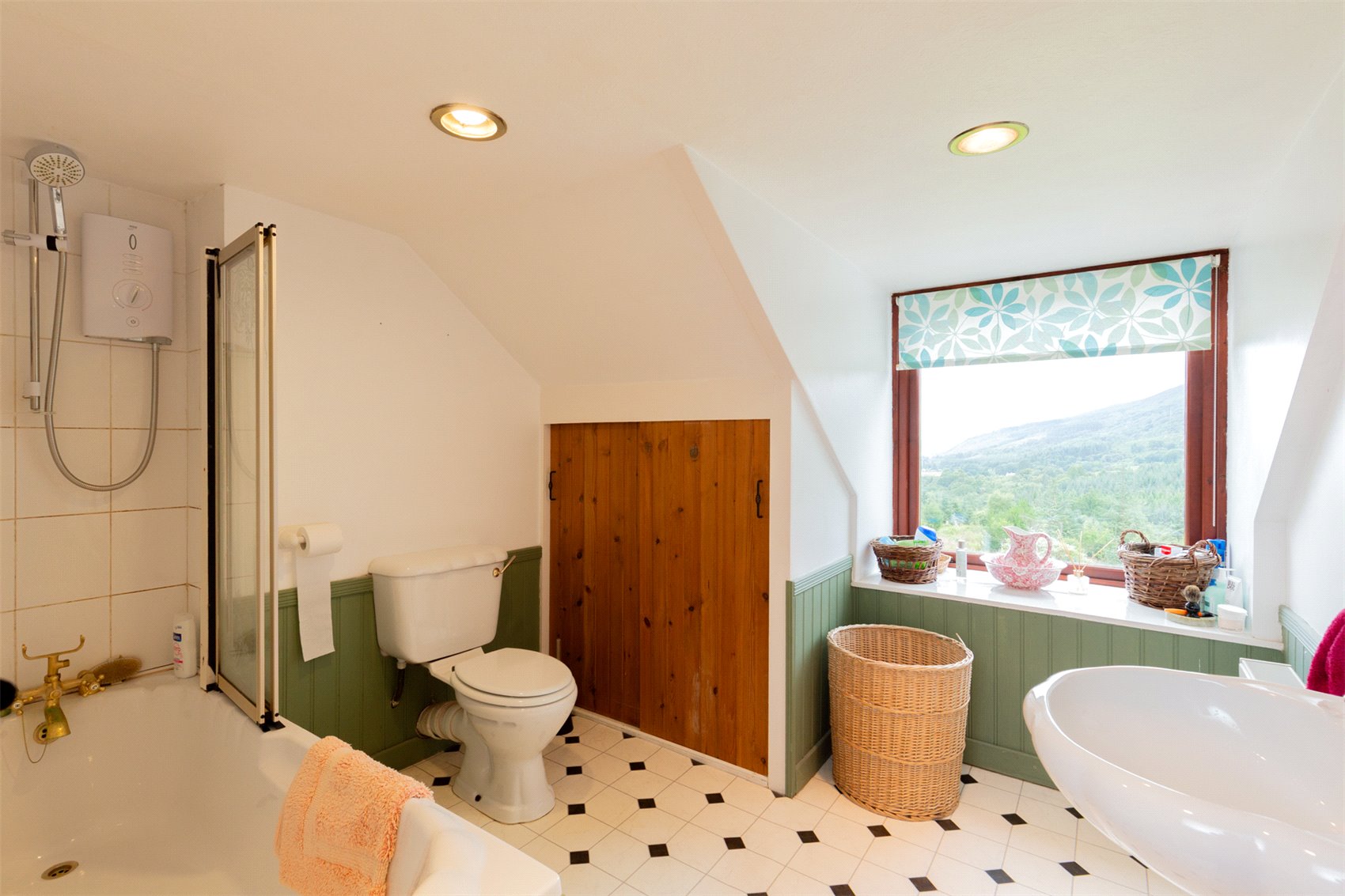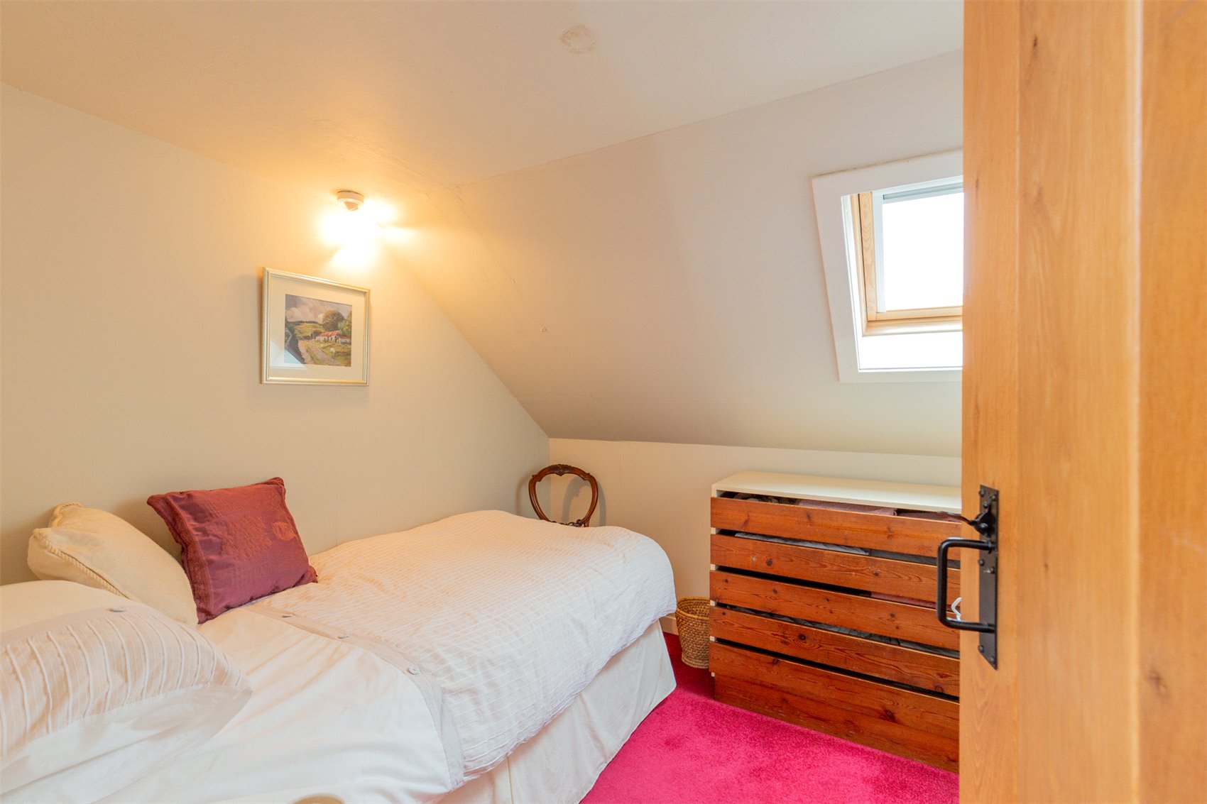 The first floor is by an easily gained open plan open tread staircase to upper hallway, bedroom 2 with fitted wardrobes and access to good long term stores, first floor bathroom with electric shower over the bath and hot tank cupboard, bedroom 3 (single) with velux window, bedroom 4, double guest bedroom.