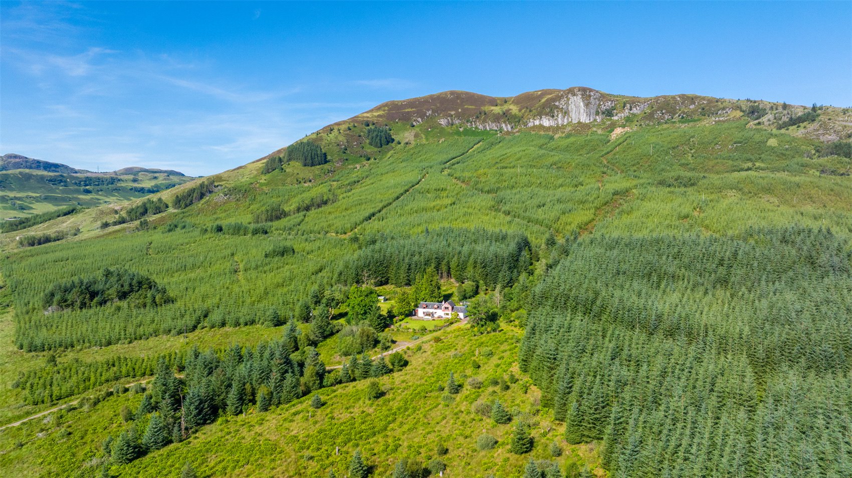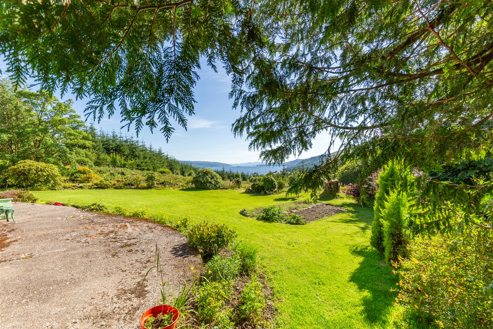 The house is at the end of a near half mile forest track and from its elevated position there are some of the best southern views down loch Fyne.