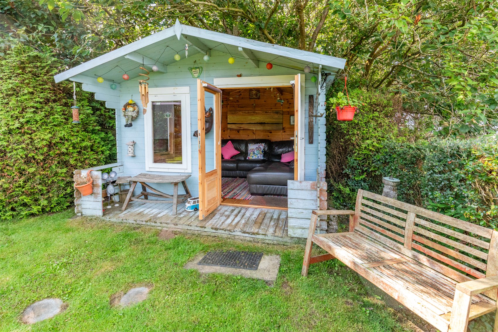 Summer house with pine lining, overhung canopy and twin leaf access doors, poultry house and enclosure, timber garden shed/equipment sore, UPVC general purpose garden kit/store.