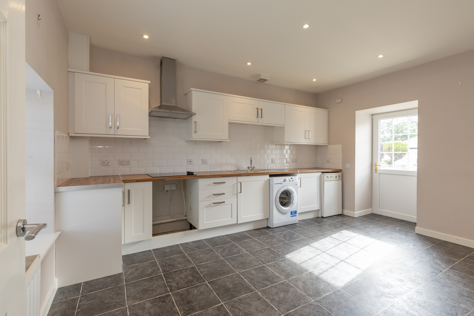 The ground floor of the accommodation comprises of entrance hallway, family shower room with shower enclosure and velux window, lounge with log burning stove, dining room / study or bedroom 4, spacious dining kitchen with oven, hob & washing machine and good sized storage cupboard in hallway.