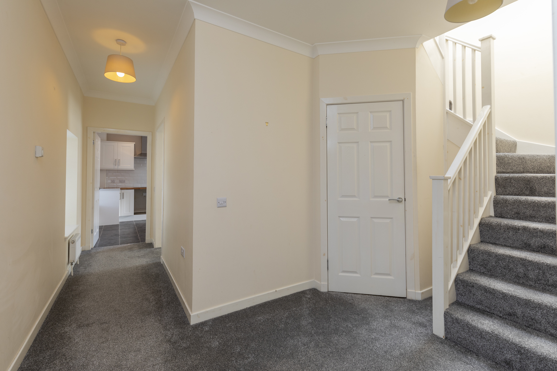 The first floor is accessed via staircase and comprises or family bathroom with three piece white bathroom suite and overhead shower, 3 double bedrooms with fitted cupboards and storage cupboard in hallway.