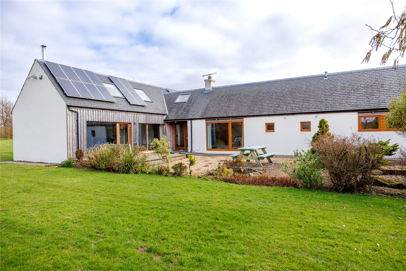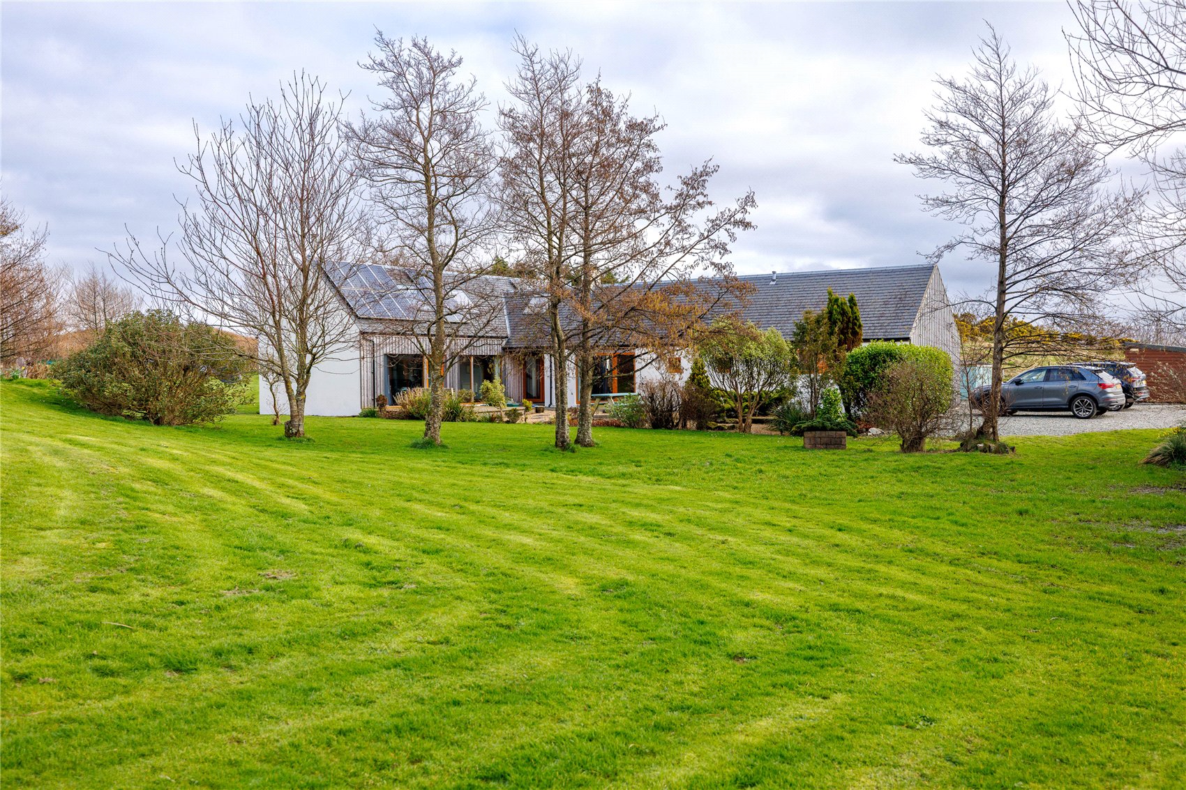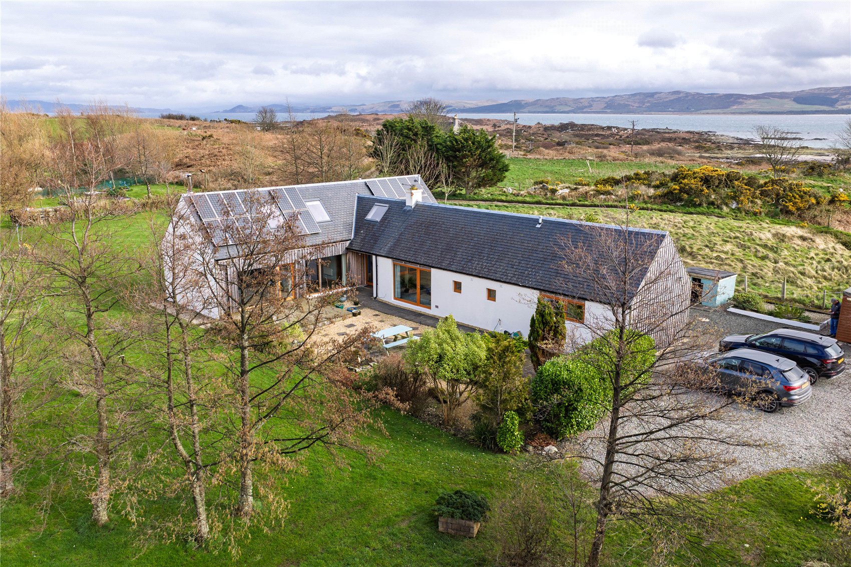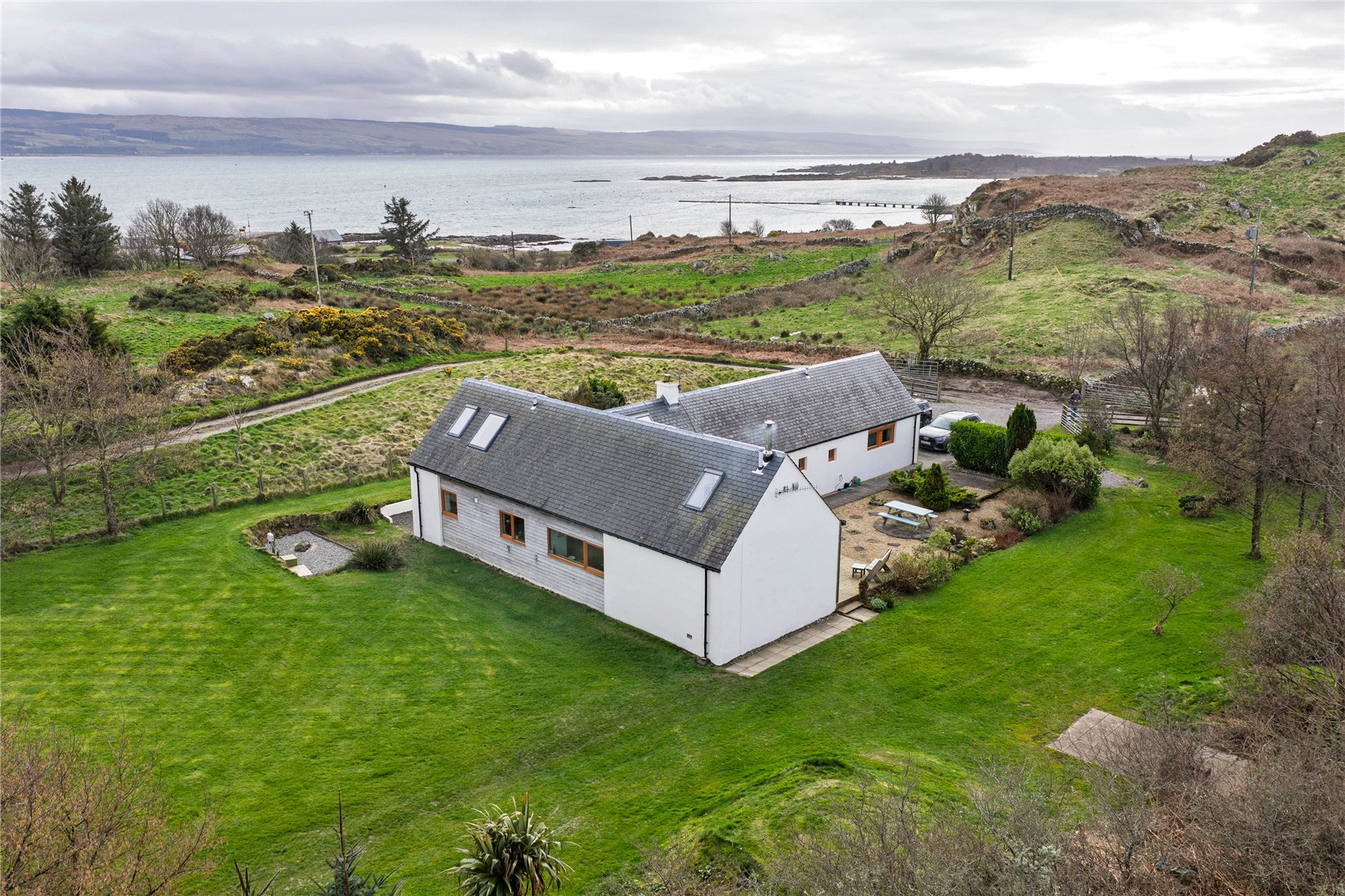 Externally, the property is striking and stylish, completed in white smooth render and contrasting larch cladding, all neatly presented under a dark grey slate roof. The materials used at Tighnavinish blend naturally with its surrounding landscape and the property sits nestled into the land and enjoys a sheltered location which in turn offers excellent privacy and seclusion.