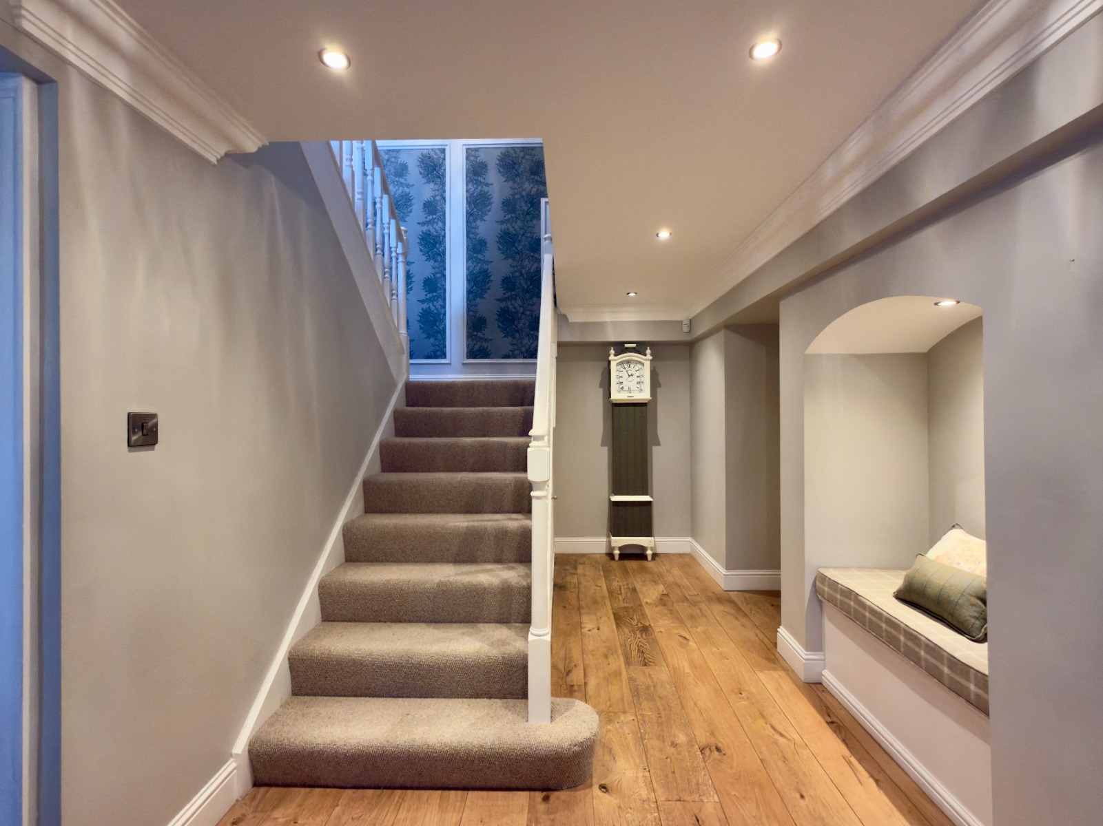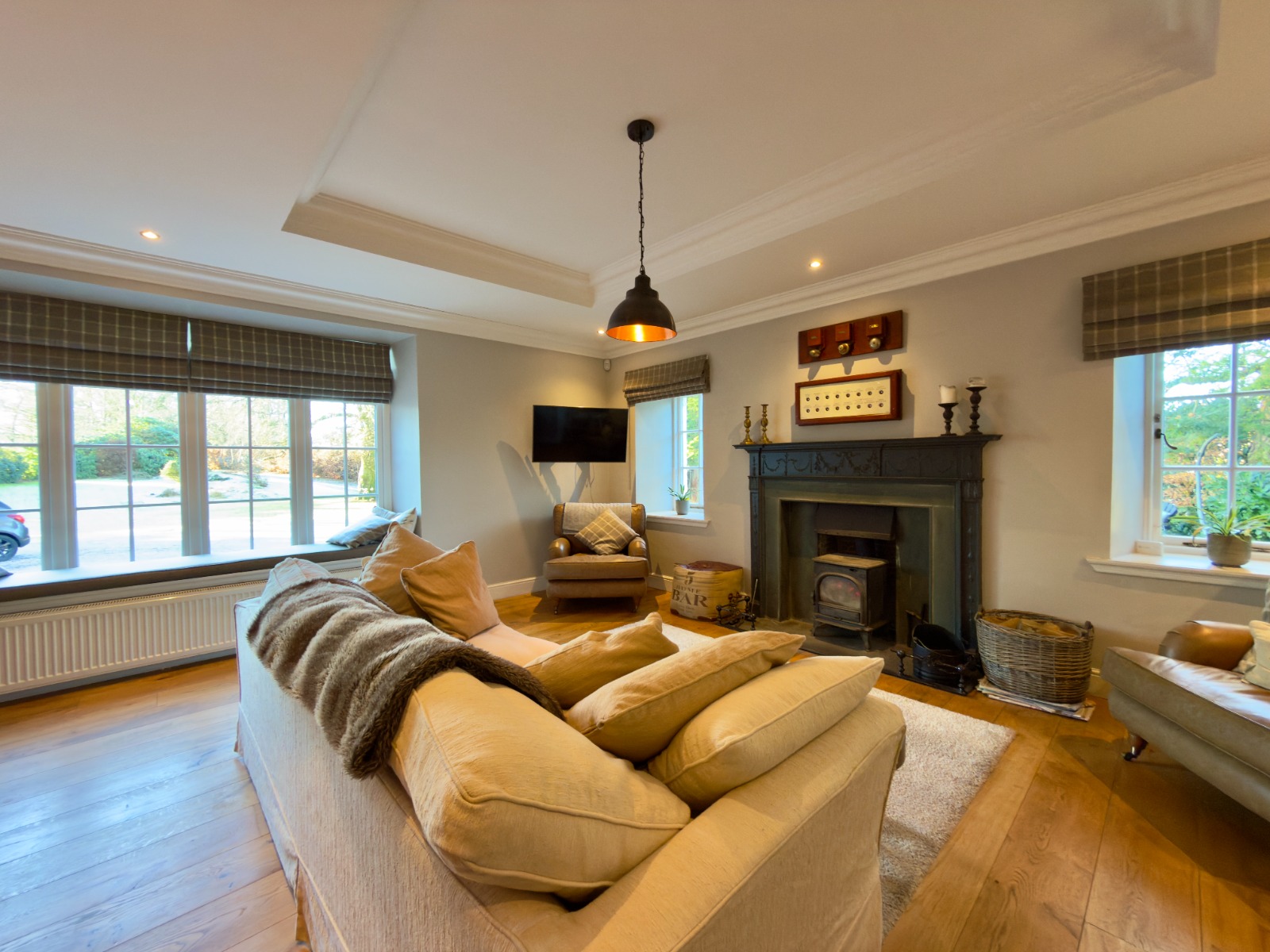 The main body of Overton Hall has been transformed into a truly luxurious family home, where high-quality finishes sit effortlessly alongside character features, creating a warm yet elegant atmosphere throughout.
