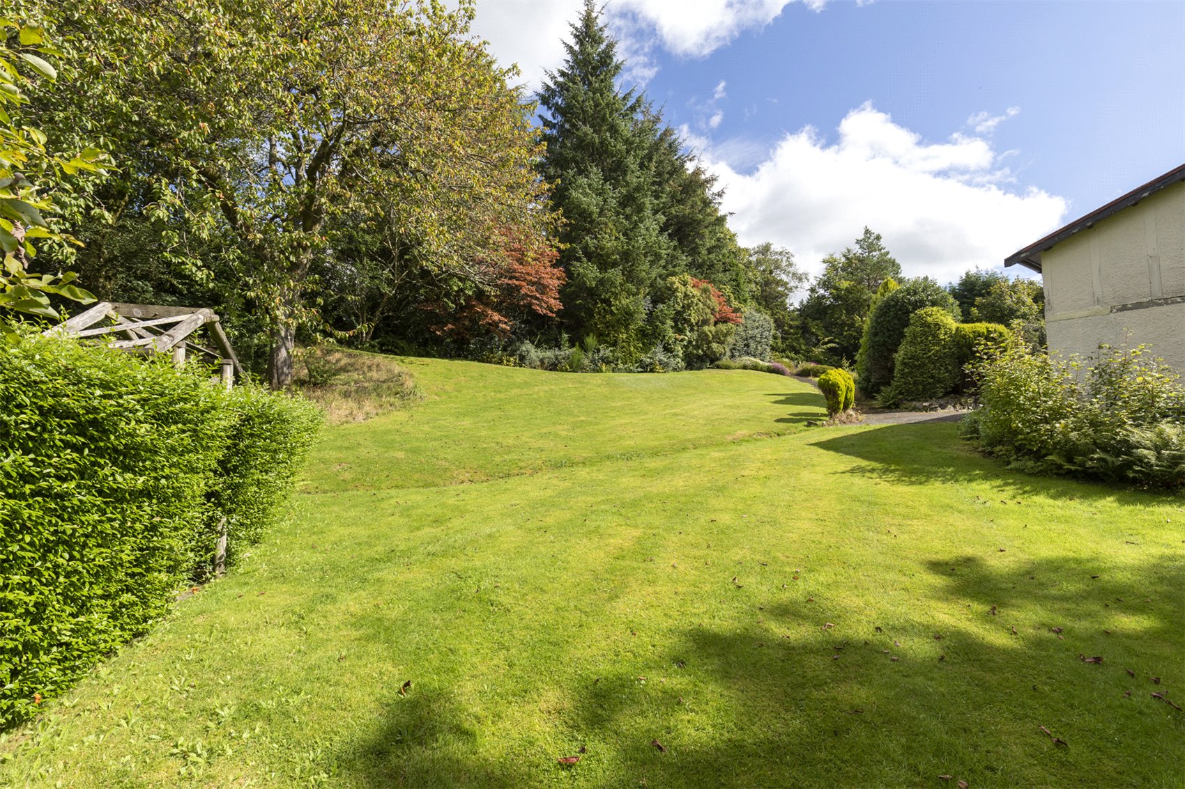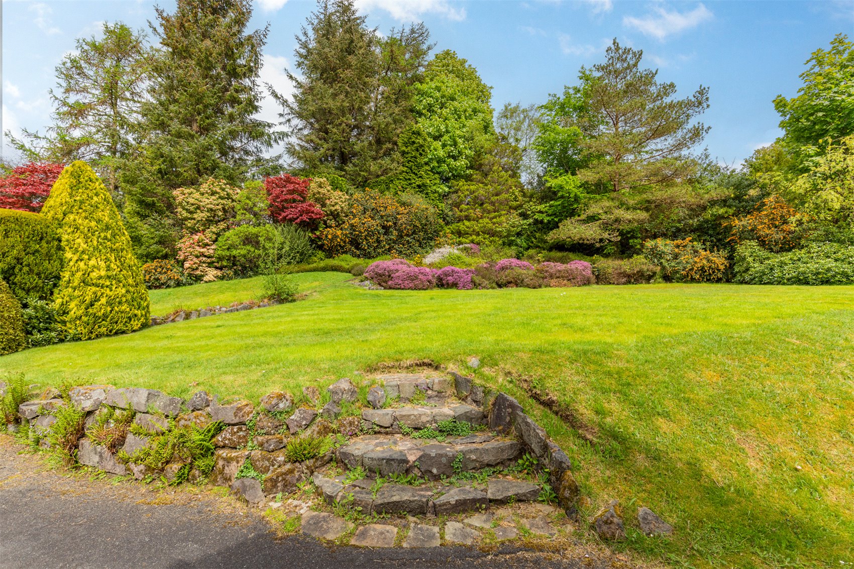 The gardens extend to about 1.32 acres, access to the driveway is via exposed stone gate piers topped with red rosemary tile, a steel gate gives access to a driveway of black asphalt. The drive is fringed with mature lawns at the edges, of which there are well stocked heaths and alpine beds, mature trees and colourful shrubs, mixed bushes and spring bulbs. A second inner lawn is sheltered and bounded by trees and bushes as well as providing the access to the convenient short cut pathway to the golf course. At the front of the house there are terraces which support paths and patios which are suitable for alfresco dining and summer furniture. Substantial dry stone tiered retaining walls support further alpine beds, steps and a pathway which leads to a further lower lawn again well fringed with shrubs and bushes. Dry stone walls with mature hedging form the boundaries.